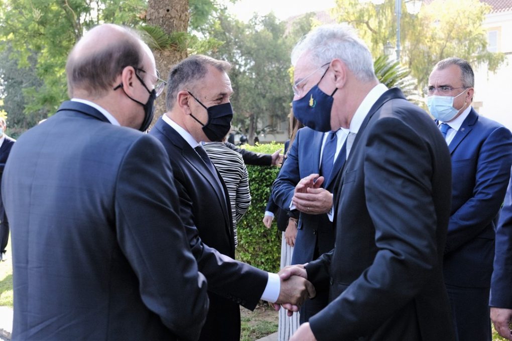 Later on, Mr. Panagiotopolos visited the Presidential Palace in Nicosia where he was received by the President of the Republic of Cyprus and he attended the reception offered by Mr. Anastasiades for the heads of foreign diplomatic missions in Cyprus. During this reception, the Minister of National Defence had the opportunity to converse with the Speaker of the House of Representatives Ms. Annita Demetriou, his Cypriot counterpart Mr. Charalambos Petrides, the Minister of Foreign Affairs of Cyprus Mr. Nikos Christodoulides, the Chief of the National Guard Lieutenant General Dimokritos Zervakis, as well as with Ambassadors, Consuls and Diplomats of foreign states to Cyprus.