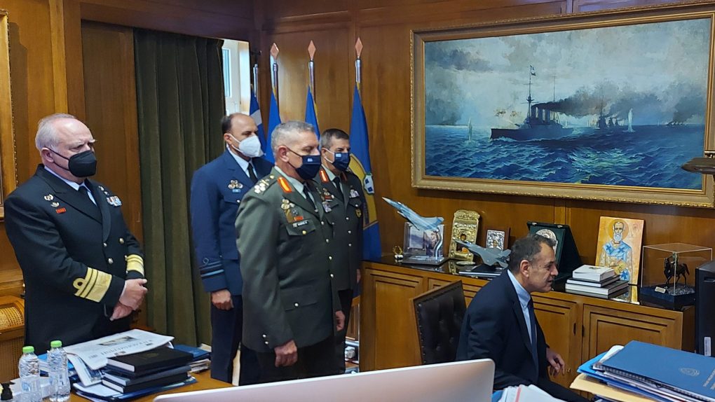 The Minister of National Defence Mr. Nikolas Panagiotopoulos held teleconferences today, Tuesday 28 December 2021, with the Commanders of the Surveillance Outposts of Gemisti and Farmakonissi, the Master of Frigate “HYDRA” and the Head of the 130 Combat Group Readiness in Limnos Island, conveying wishes to all the Officers, NCOs and Conscripts serving with them.