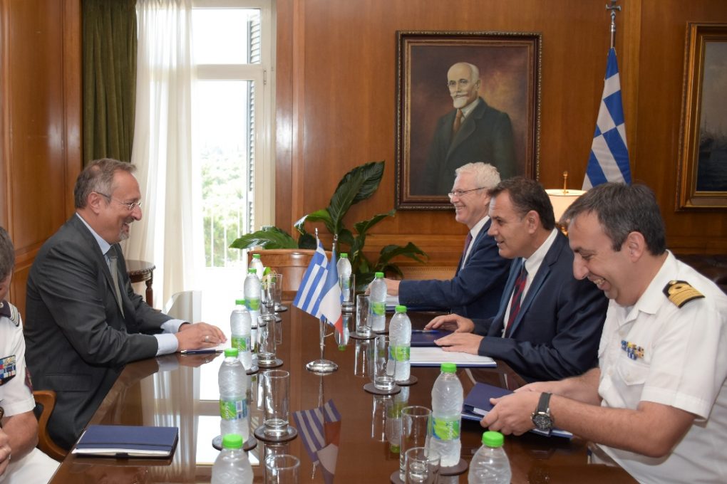 The Minister of National Defence Mr. Nikolaos Panagiotopoulos met today with the Ambassador of France Mr. Christophe Chantepy. During their meeting, further enhancement of bilateral cooperation, as well as the developments in the Eastern Mediterranean, were discussed.