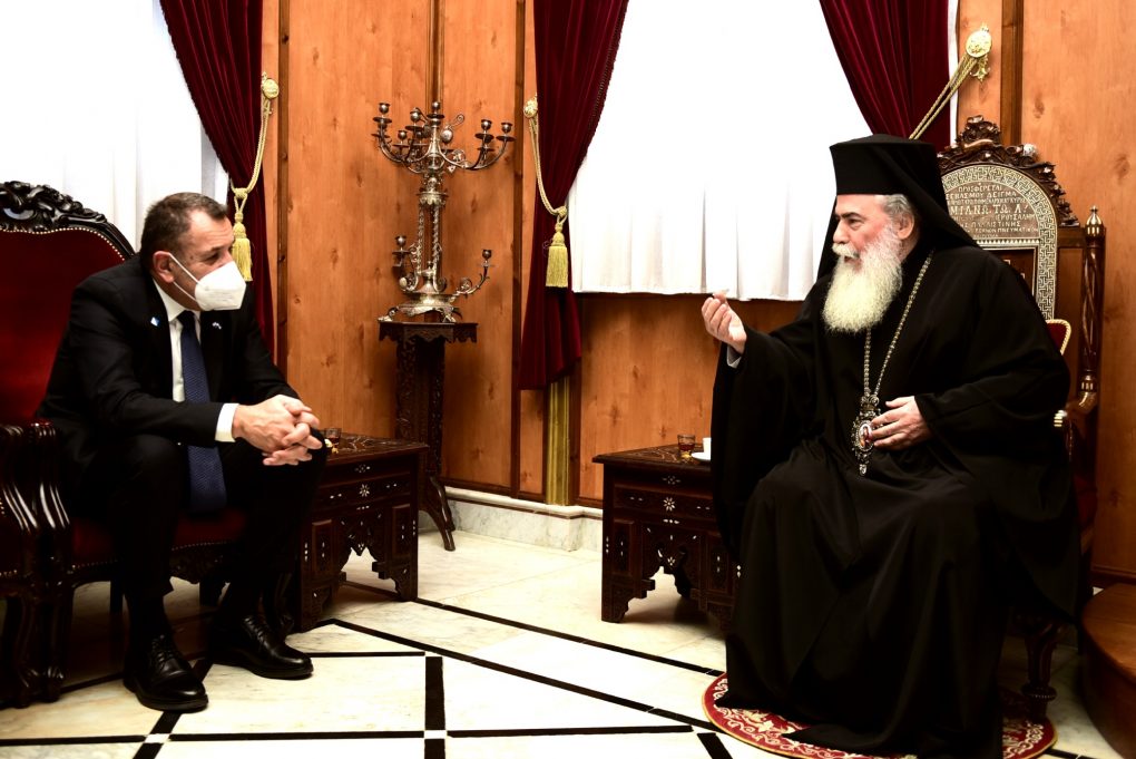 Before the meeting, the Minister of National Defence visited the Patriarchate of Jerusalem, where he met with His Beatitude the Patriarch of Jerusalem and All Palestine Theofilos III. Afterwards, he visited the Old City of Jerusalem and he prayed in the All Holy Church of the Resurrection, where the Holy Sepulchre is located.