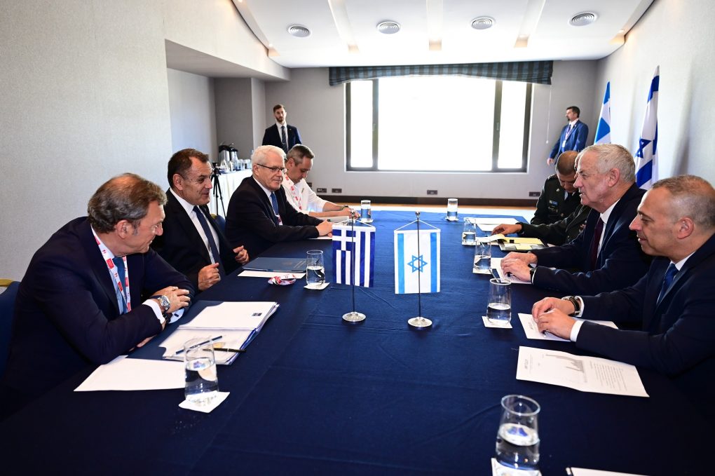 The Minister of National Defence Mr. Nikolaos Panagiotopoulos met, on Tuesday, 5th of July 2022, with the Defence Minister of Israel Mr. Benjamin Gantz at the sidelines of the ECONOMIST Conference, in Lagonissi.