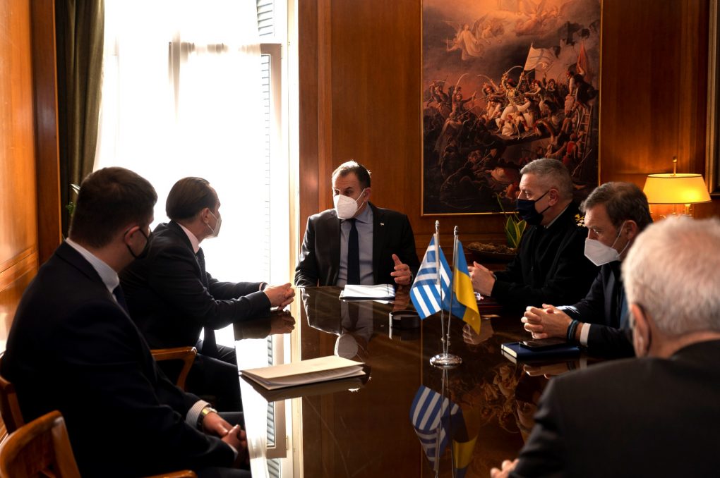 The Minister of National Defence Mr. Nikolaos Panagiotopoulos had a meeting, on Friday, 25 February 2022, with the Ambassador of Ukraine Mr. Sergii Shutenko, in which they discussed the developments in Ukraine.