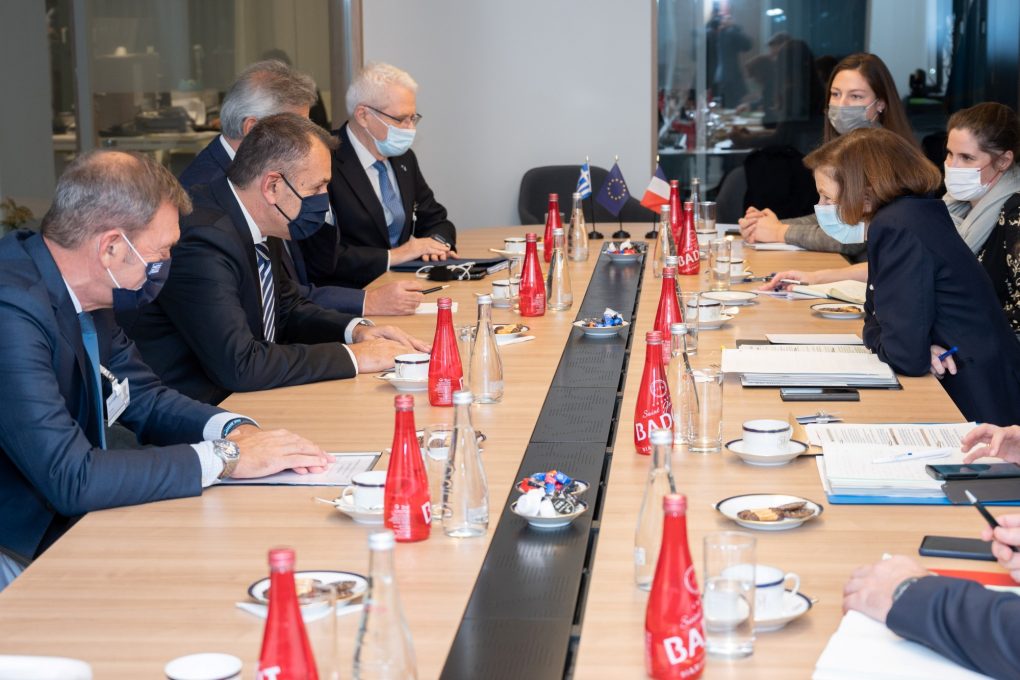 The Minister of National Defence Mr. Nikolaos Panagiotopoulos had a meeting in Brussels, on Monday 15 November 2021, with the Minister of Defence of the French Republic Ms. Florence Parly, before the joint session of EU Foreign Affairs and Defence Ministers.