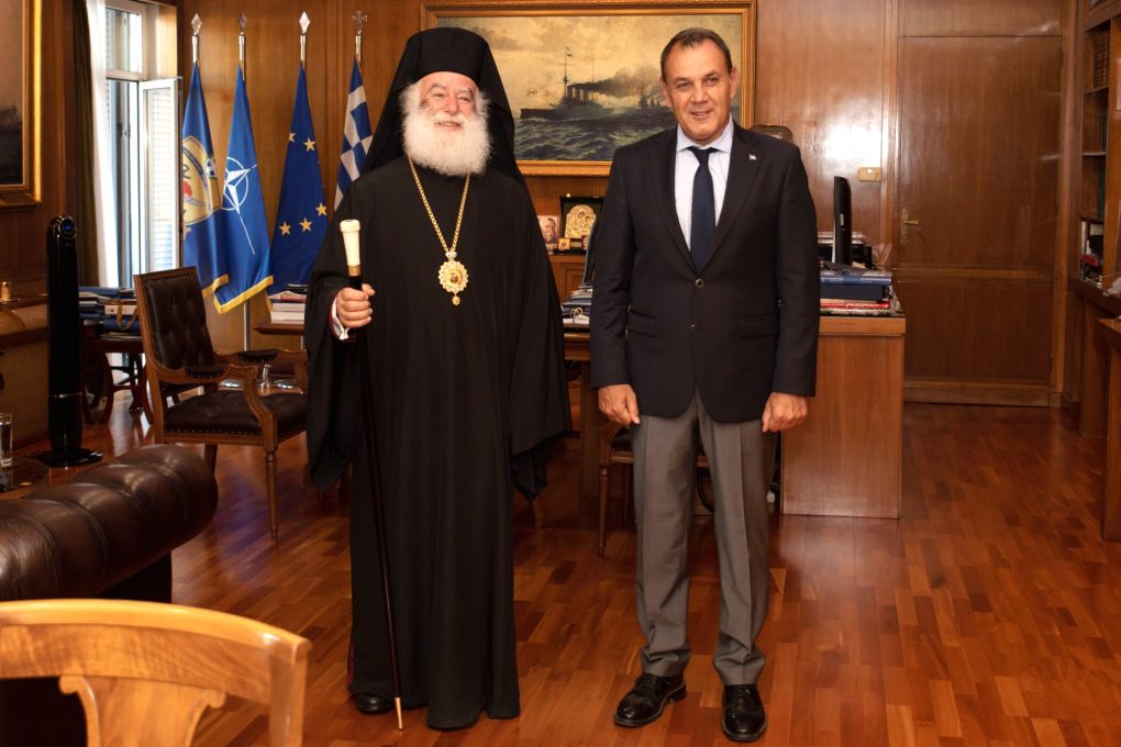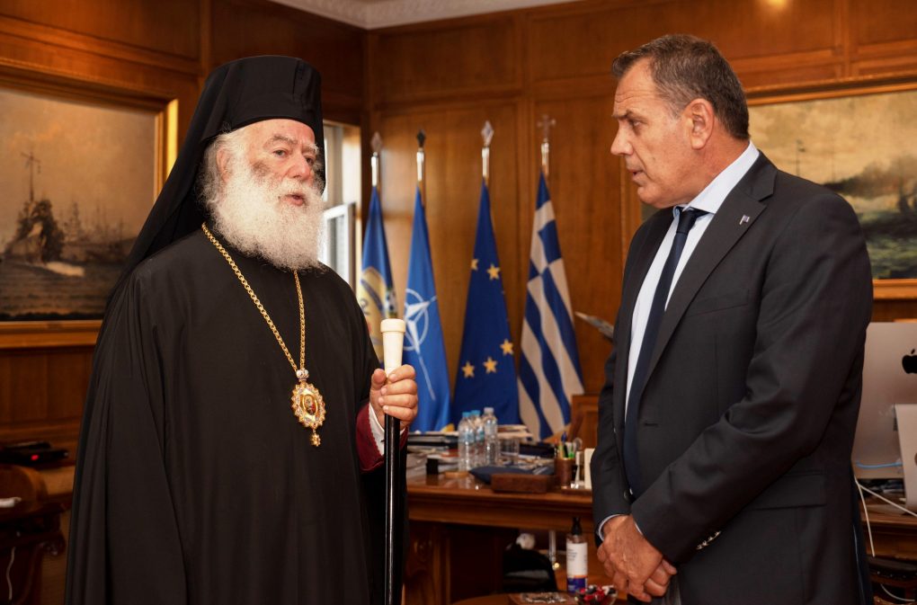The Minister of National Defence Mr. Nikolaos Panagiotopoulos received the Pope and Patriarch of Alexandria and All Africa Theodoros II in his office, at the Ministry of National Defence, on 23 July 2021.
