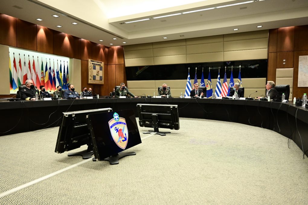 The meeting, held in the “Ioannis Kapodistrias” Hall, was also attended by the Chief/HNDGS General Konstantinos Floros, the Chief/HAGS Lieutenant General Charalambos Laloussis, the Chief/HAFGS Lieutenant General Themistoklis Bourolias, and the Deputy Chief/HNGS Rear Admiral Georgios Kampourakis HN.