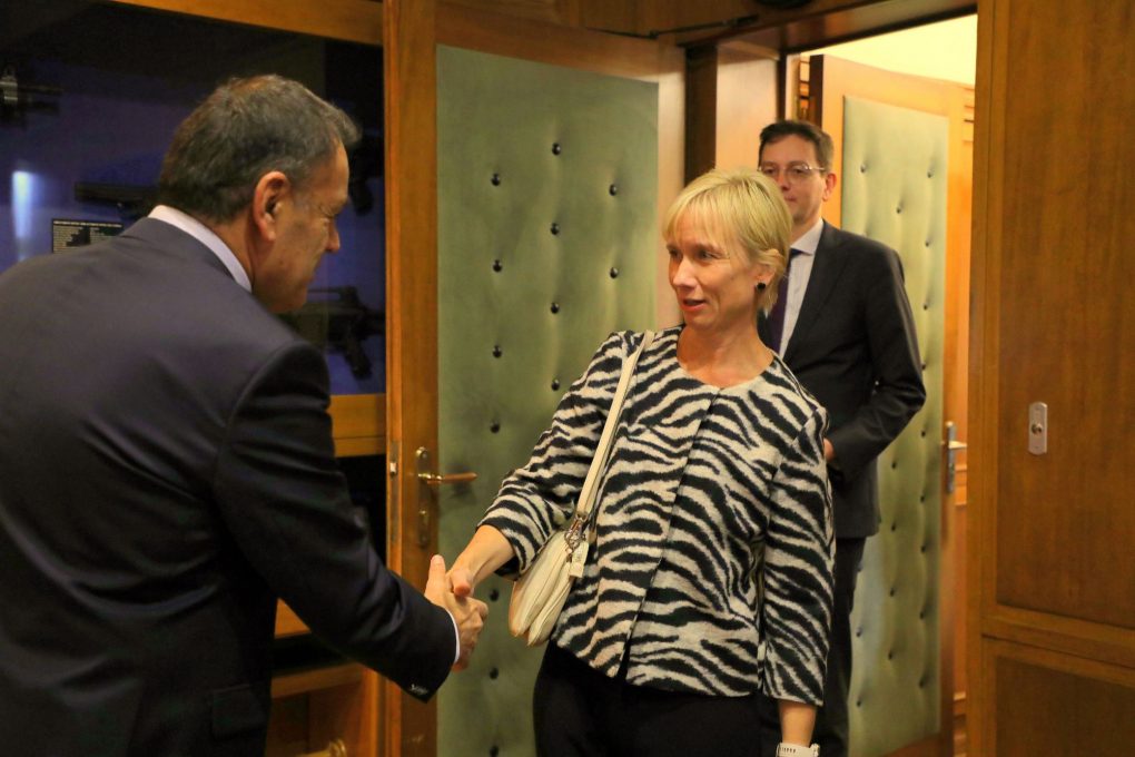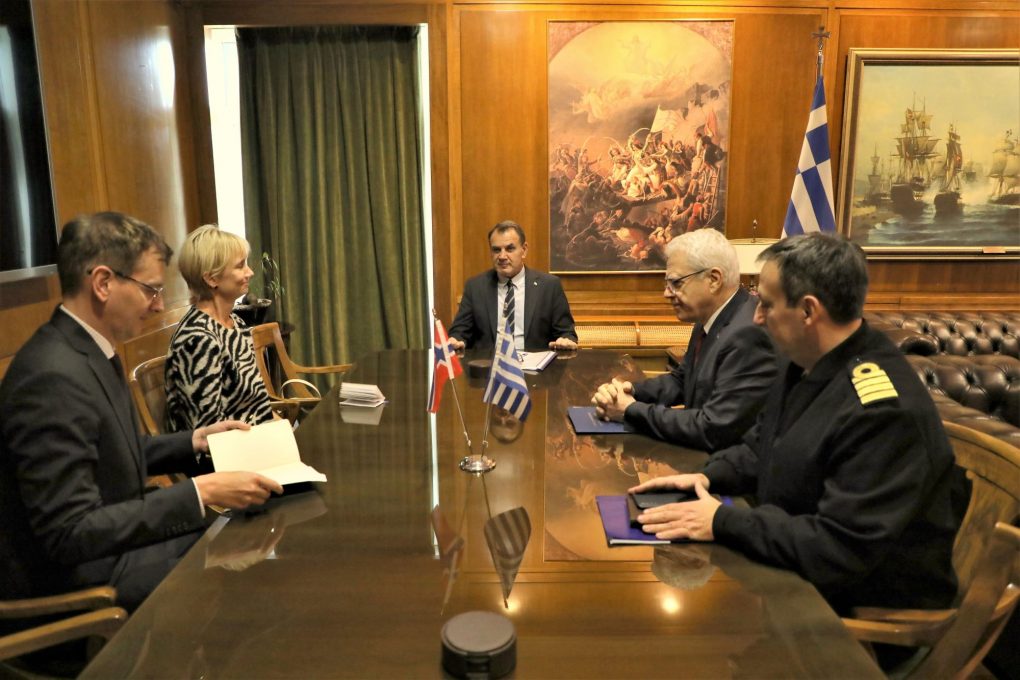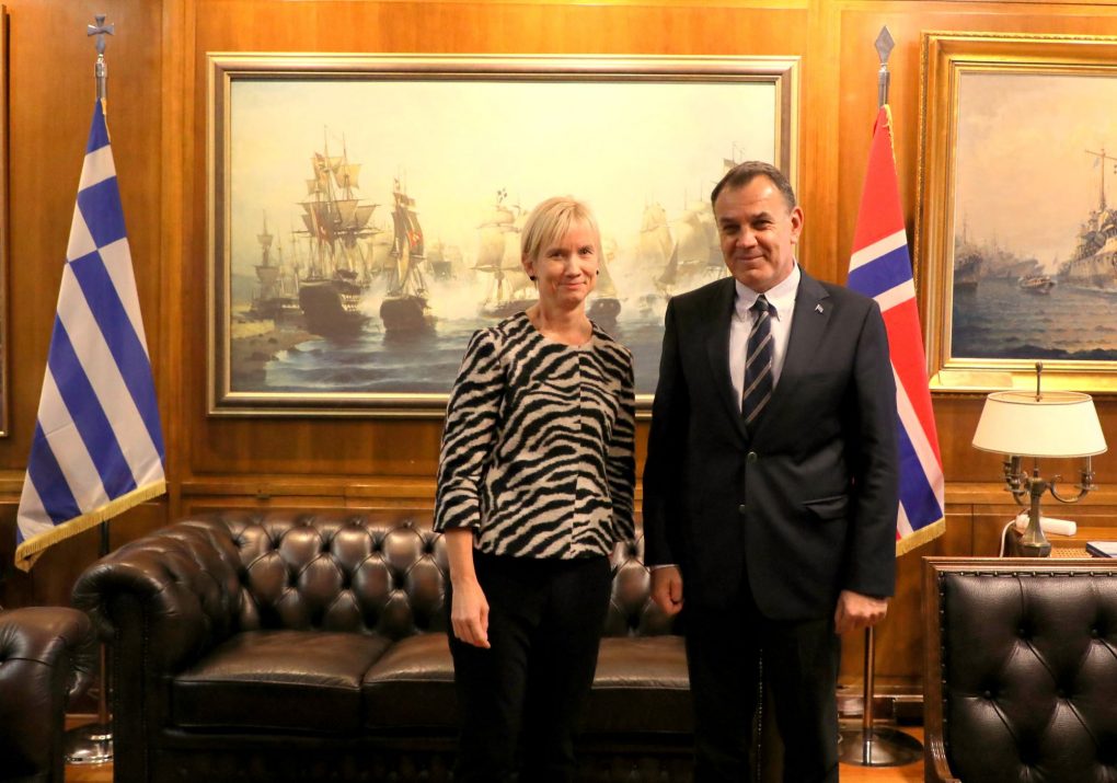The Minister of National Defence Mr. Nikolaos Panagiotopoulos had a courtesy meeting, on Monday 28 November 2022, with the Ambassador of Norway, Ms. Lajla Brandt Jakhelln with whom he discussed topics pertinent to the reinforcement of the bilateral defence cooperation.