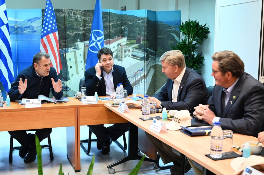 The Minister of National Defence Mr. Nikolaos Panagiotopoulos met today, Friday 10 February 2023, at the installations of NMIOTC in Souda-Crete, with a cross-party delegation of US Representatives, headed by Mr. Mike Rogers, Chairman of the US House Armed Services, who is visiting Greece,