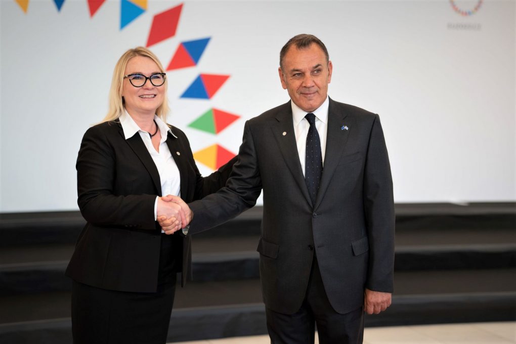 In the margins of the Summit’s work, the Minister of National Defence met with the Parliamentary State Secretary of the Federal Ministry of Defence of Germany, Ms. Siemtje Möller, and the Minister of Defence of France, Mr. Sébastian Lecornu, matters of mutual interest pertaining to bilateral cooperation were discussed at these meetings.
