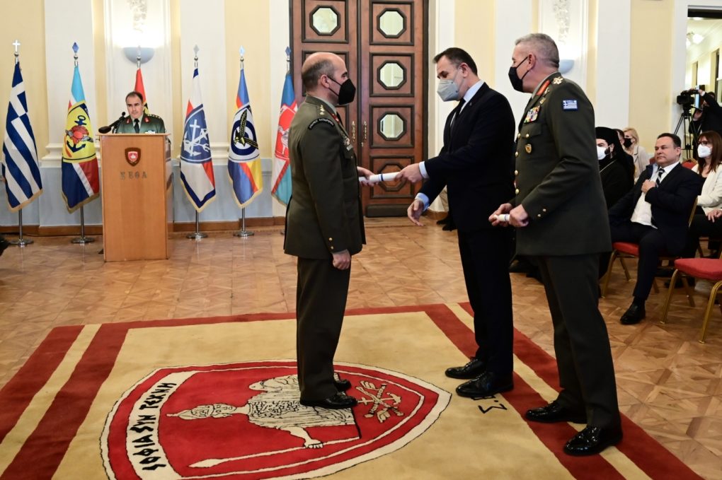 The Minister of National Defence Mr. Nikolaos Panagiotopoulos awarded today, Friday 15 April 2022, the diplomas to the graduates of the 74th training series of the Hellenic National Defence College, which took place at the Armed Forces Officers Club.