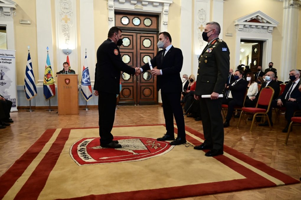 In total, 61 students from the Armed Forces, three from the National Guard, one from the Hellenic Police, one from the Hellenic Fire Service, one from the Hellenic Coast Guard – Port Police, three Civilians from the Ministries of Internal Affairs and Defence, one from the regional government, as well as one military from Bosnia – Herzegovina, one from Egypt and one from the Republic of North Macedonia, graduated with this training series that attended the courses.