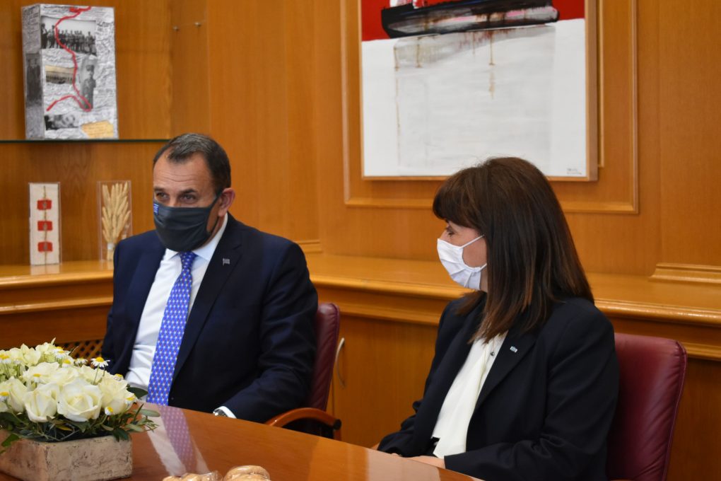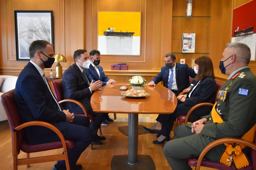Afterwards, Mr. Panagiotopoulos accompanied the President of the Republic to the City Hall of Alexandroupoli where a meeting was held with the Mayor Mr. Ioannis Zamboukis.
