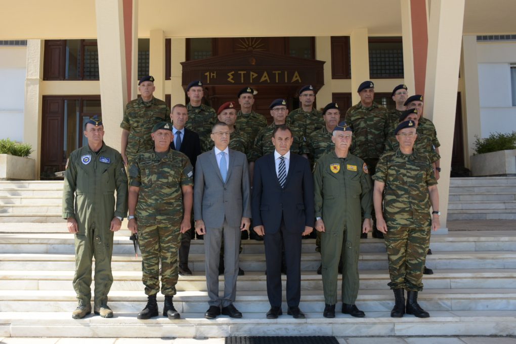 The Minister of National Defence Mr. Nikolaos Panagiotopoulos, accompanied by the Chief of Hellenic National Defence General Staff Lieutenant General Christos Christodoulou, the Chief of Hellenic Army General Staff Lieutenant General Georgios Kampas and the Hellenic Air Force General Staff Lieutenant General (AF) Georgios Blioumis, visited today the Hellenic First Army in Larissa. The visits were also attended by the Deputy Minister of National Defence Mr. Alkiviadis Stefanis.