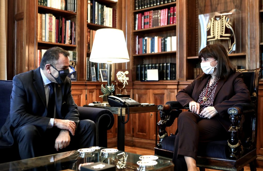 The Minister of National Defence Mr. Nikolaos Panagiotopoulos visited today, Tuesday 9 February 2012, the Presidential Mansion, where he met with the President of the Hellenic Republic Ms Katerina Sakellaropoulou, and briefed her on matters of his pertinence.