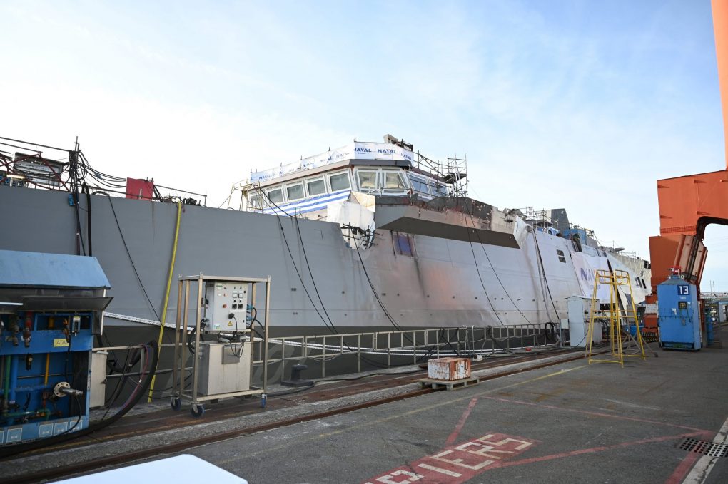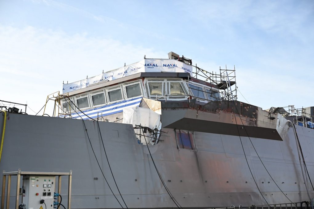 On Wednesday 04 October 2023, the Minister of National Defence Nikos Dendias attended the launching ceremony of the frigate “Kimon”, at Naval Group’s facilities, in Lorient, France. Mr. Dendias was welcomed by the French Minister of Defence, Sébastien Lecornu, in Lann-Bihoué Air Base. Next, Mr. Dendias visited Naval Group’s facilities, where he was welcomed by the Chief/HNGS Vice Admiral Ioannis Drymousis HN, the Naval Group’s CEO Pier-Eric Pommellet and the local authorities. The Minister of National Defence first inspected the shipbuilding operations of frigate “Nearchos” and afterwards he attended the launching ceremony of frigate FDI HN1 “KIMON”. The ceremony was also attended on the Greek side by the Secretary General of the Ministry of National Defence Mr. Antonis Oikonomou, the Counsellor
