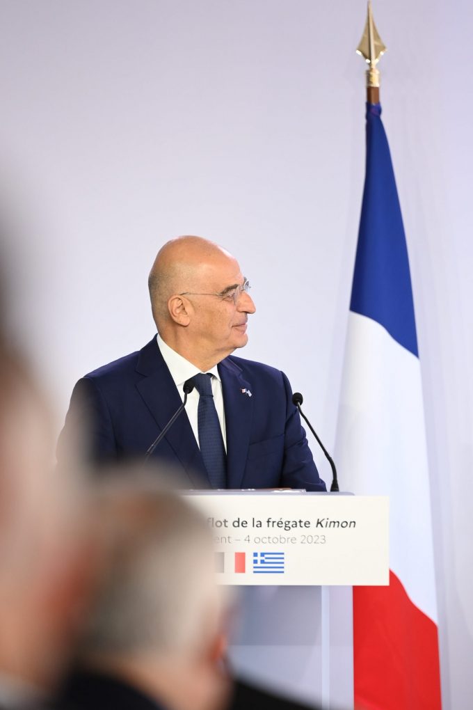 Ladies and gentlemen, I will not hide from you that today I am moved more than ever. It is for me a flagship event for Greece; an important milestone of the strategic partnership relation for the cooperation in defence and security between the Hellenic and the French Republic. But I would also like to say that the acquirement of frigate “Kimon” is a great source of pride for the members of the Hellenic Navy, the Armed Forces of our homeland, for all Greek women and men. “Kimon” continues Greece’s tradition being a naval force for 2,500 years, from antiquity until today. This new state-of-the-art vessel reinforces the armouring