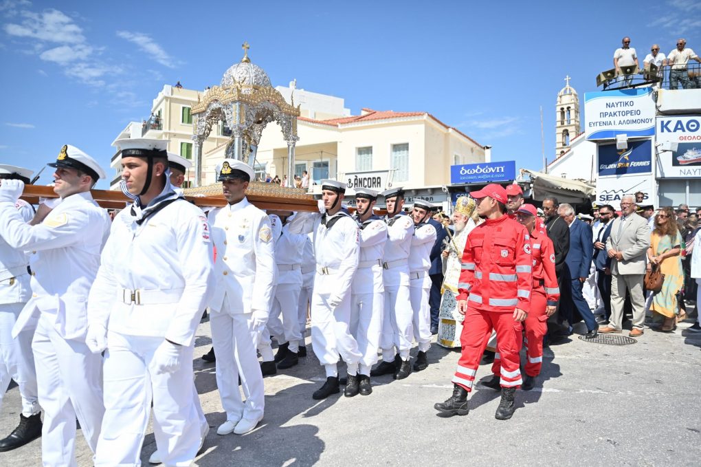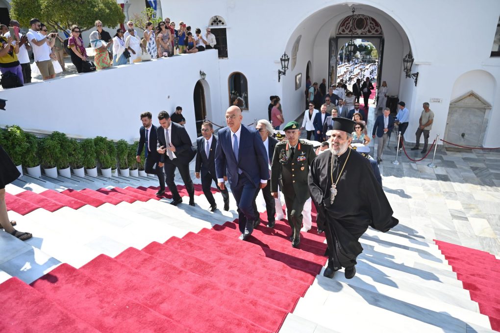 On Thursday 15 August 2024, the Minister of National Defence Nikos Dendias represented the President of the Government in the celebration of the Assumption of Virgin Mary and the memorial service for the 84th anniversary from the attack with a torpedo of “ELLI” cruiser in Tinos.