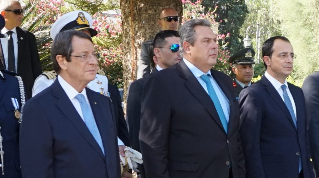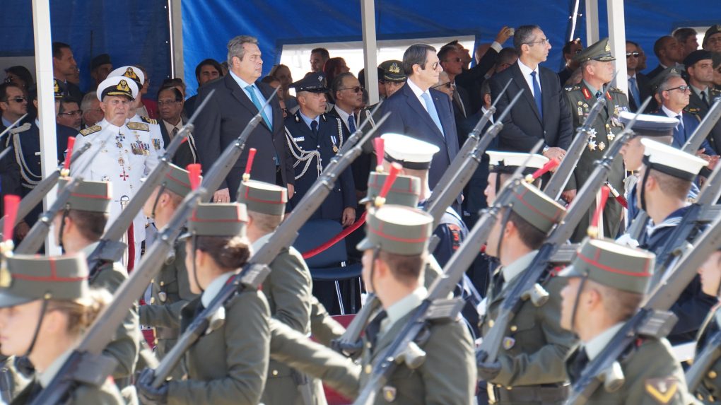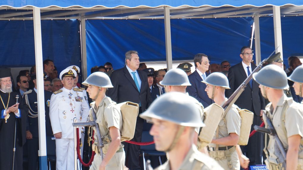 The Minister of National Defence Panos Kammenos, accompanied by the Chief of HNDGS Admiral Evangelos Apostolakis, attended the celebration, held in Nicosia, for the 58th anniversary of the Independence of the Republic of Cyprus as representative of the government.