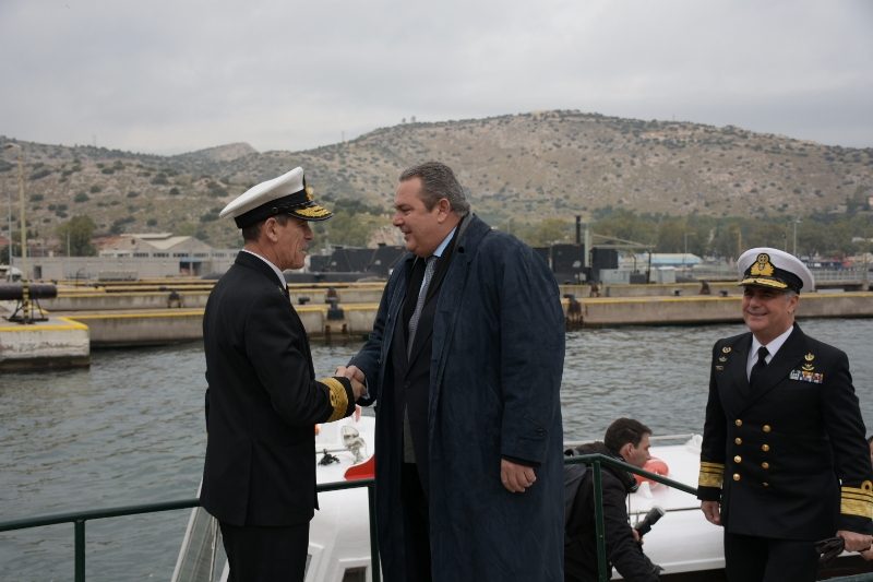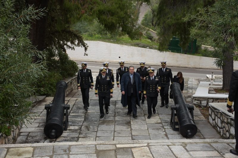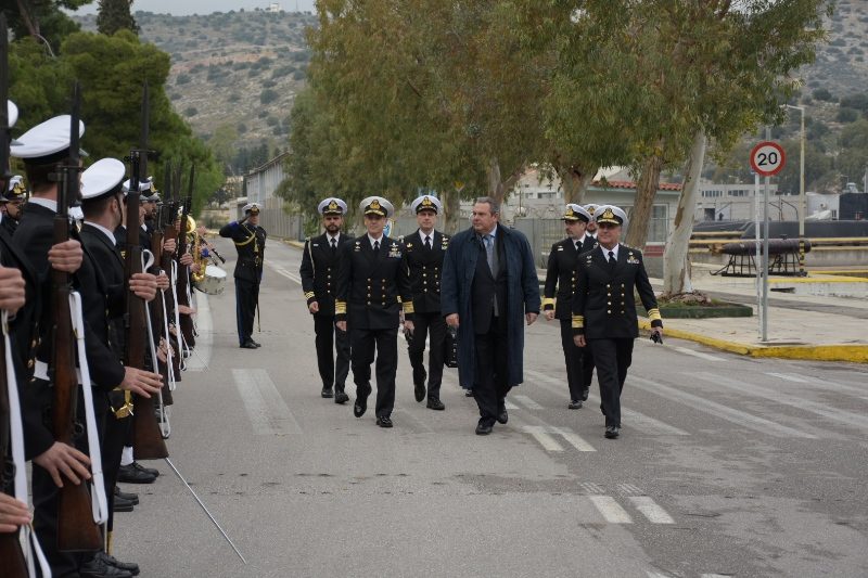 The Minister of National Defence Panos Kammenos, accompanied by the Chief of Hellenic Navy General Staff Vice Admiral Nikolaos Tsounis HN, visited the Fleet Headquarters at Salamis Naval Base and he was welcomed by the Fleet Commander in Chief Vice Admiral Ioannis Pavlopoulos HN.