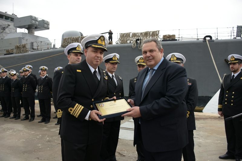 At this point, I would like to convey, with great pleasure and pride, to the Captains and crews of “SALAMIS” and “NIKIFOROS FOKAS” Frigates, the state’s gratitude, and to congratulate you on the flawless execution of your mission and to award you a commendation, to honour your national contribution.
