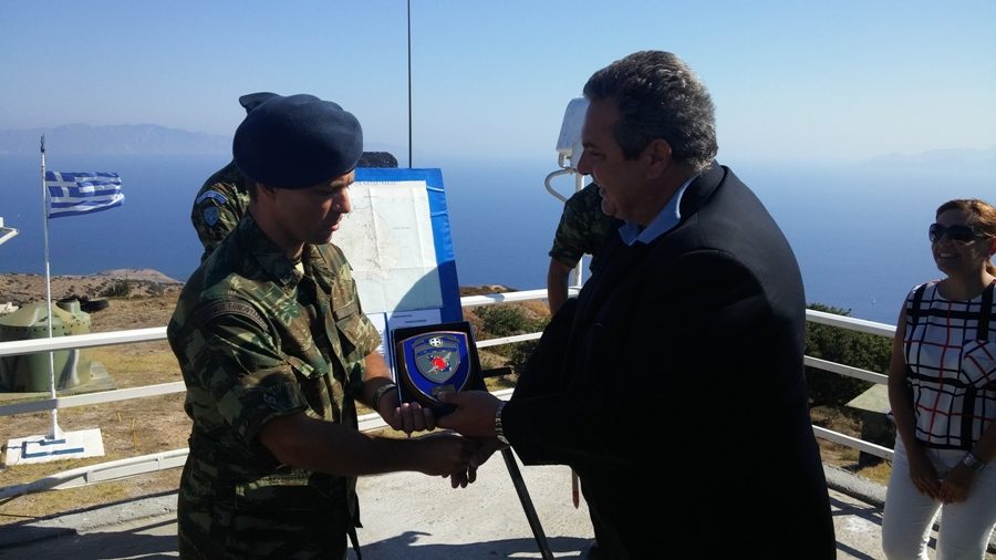The Minister of National Defence Panos Kammenos accompanied by the Chief of HAGS Lieutenant General Vasileios Tellidis visited the Defence Command of Nisyros, the Greek outpost of Panagia Kyra, Nisyros, and the outpost of Astypalaia.