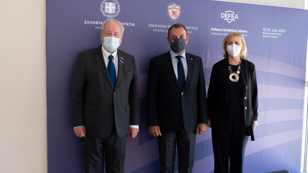 The Minister of National Defence Mr. Nikolaos Panagiotopoulos had today, Thursday 15 July 2021, meetings in the margins of the International Defence and Security Exhibition “DEFEA 21”, with the Chairman of the Committee on Foreign Affairs, Defence and Armed Forces of the French Senate Mr. Christian Cambon, and the President of the National Defense and Armed Forces Committee of the French National Assembly Ms Francoise Dumas.