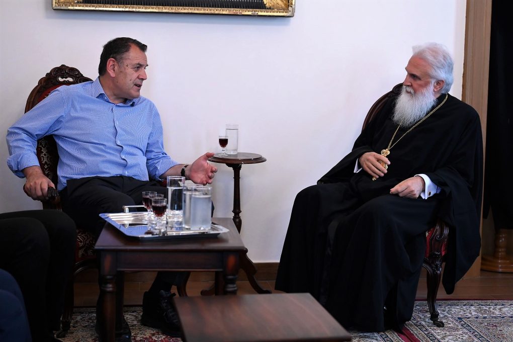 Next, Mr. Panagiotopoulos visited the facilities of the 88th Military Command and addressed Officers, NCOs and Soldiers who serve at Limnos. Furthermore, the Minister had a meeting at the Bishop’s Residence of the island with his Eminence, the Metropolitan Ierotheos C, and afterwards with the Mayor of Limnos Mr. Dimitris Marinakis.