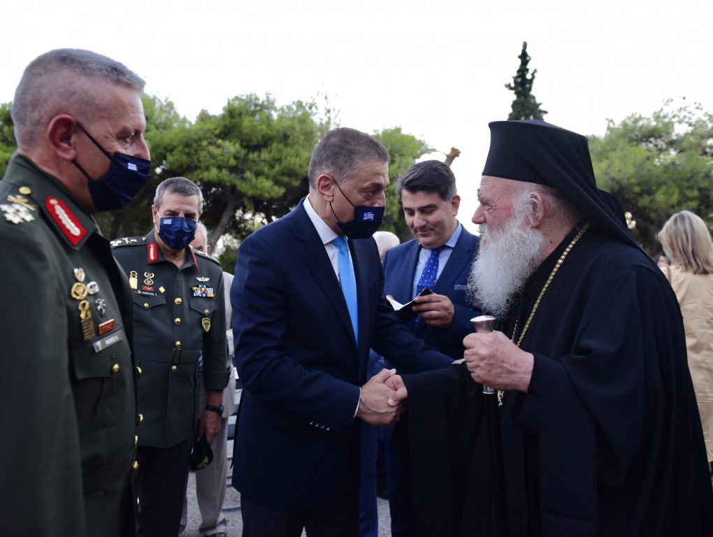 The Deputy Minister of National Defence Alkiviadis Stefanis attended the Great Festive Vespers, presided by His Beatitude Hieronymos II, Archbishop of Athens and all Greece, in memory of the speech delivered by Apostle Paul to the Athenians, on Areopagus at the Acropolis, on Tuesday 29 June 2021.