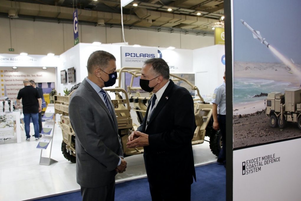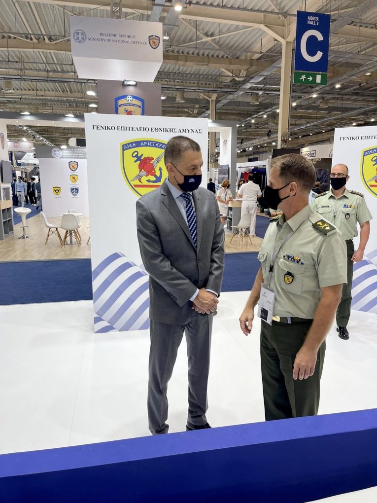 The Deputy Minister of National Defence Alkiviadis Stefanis met, on Thrursday 15 July 2021, the last day of DEFEA, with the Deputy Minister of Defence of Armenia Mr. Suren Sahakayan, at the presence of H.E. the Ambassador of Armenia to Greece Fadey Charchoghlyan. Matters of mutual interest, as well as the activities for further development and