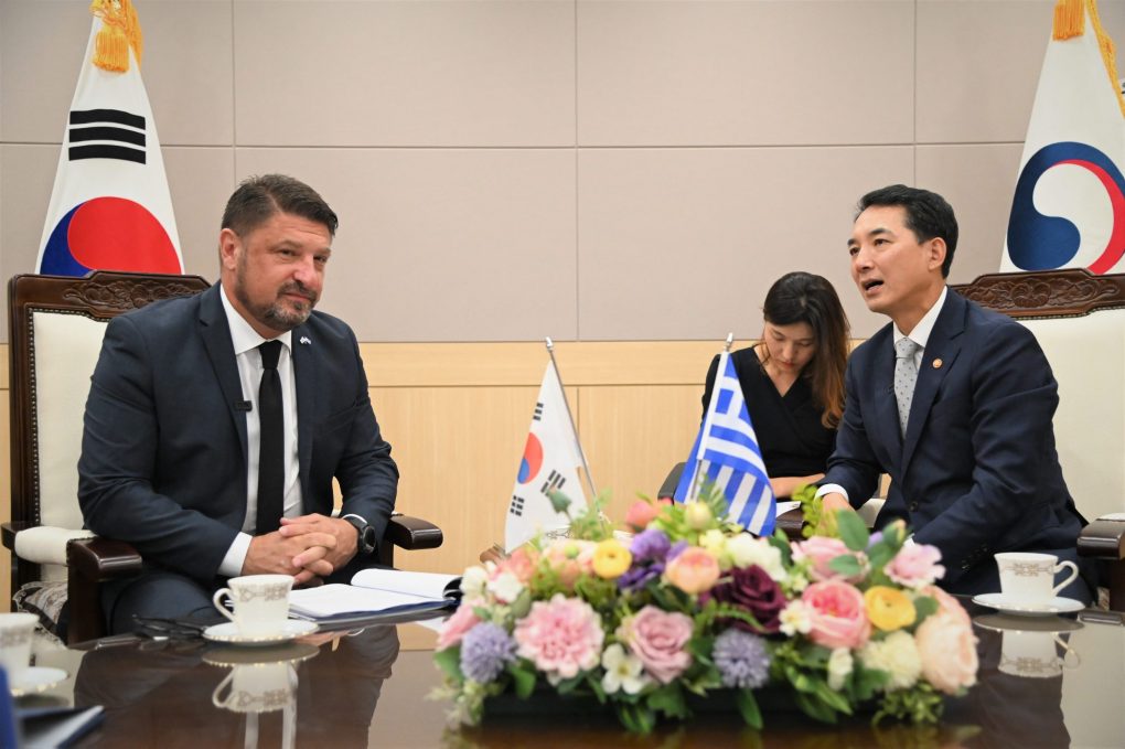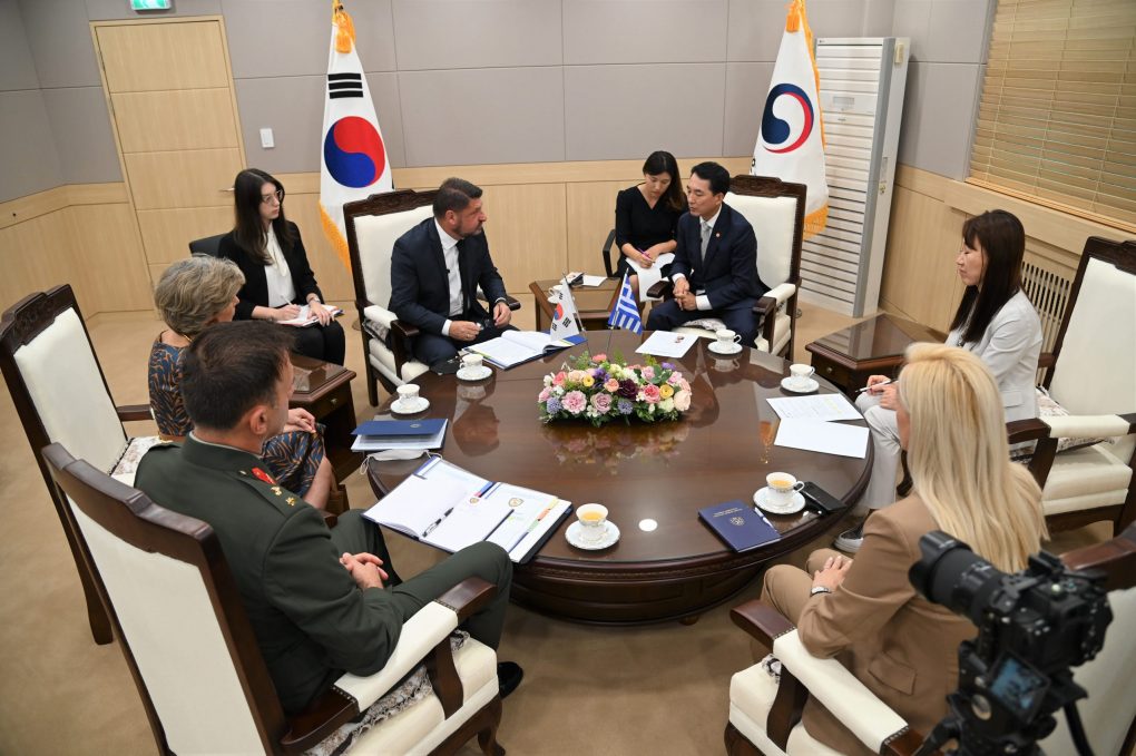 The Deputy Minister of National Defence, Mr. Nikolaos Chardalias, in the context of his official visit to the Republic of Korea, had today, Monday 5 September 2022, a bilateral meeting with the Minister of Patriots and Veterans Affairs, Mr. Minshik Park.
