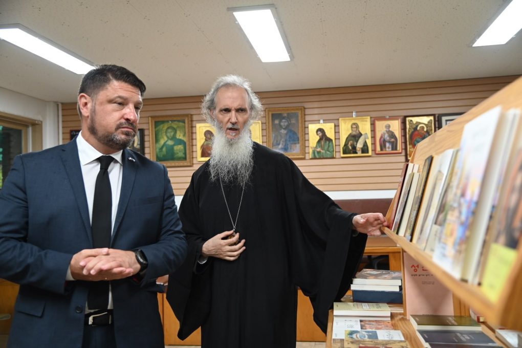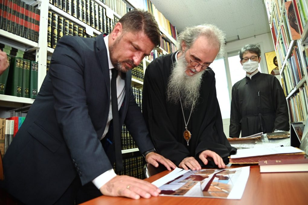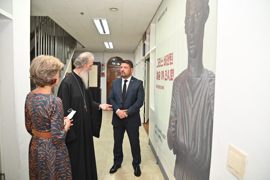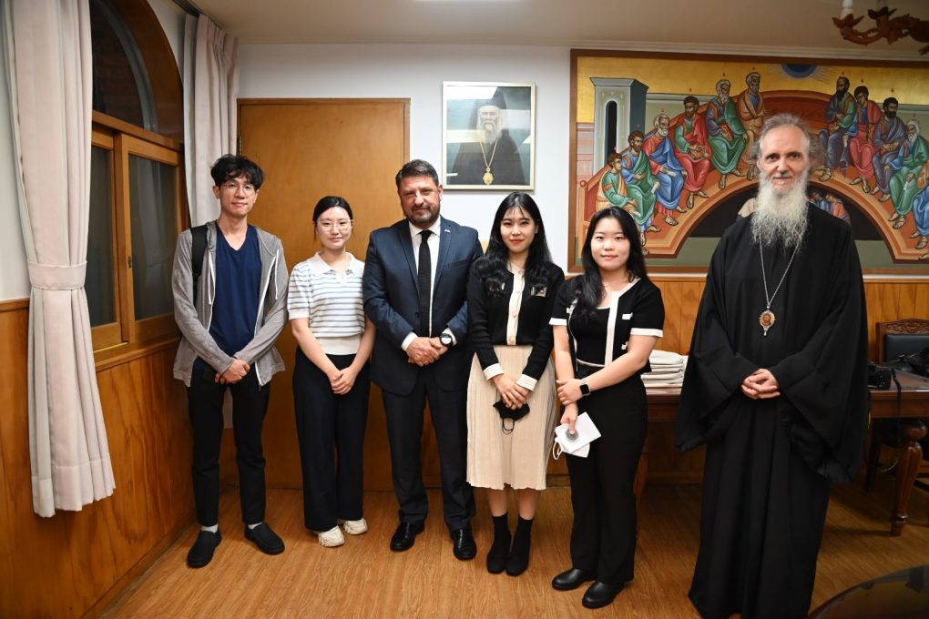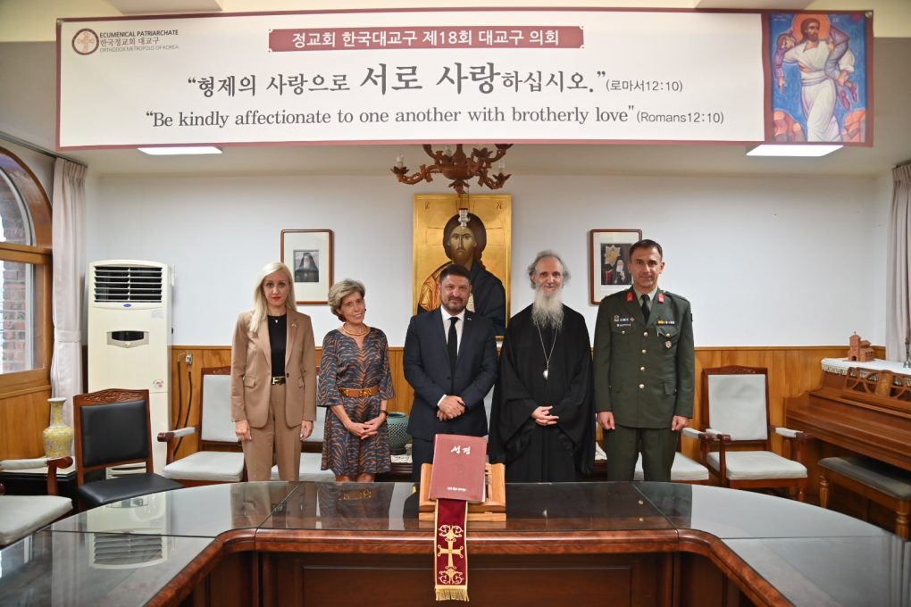 Mr. Hardalias was briefed on by the Metropolitan of Korea & Exarch of Japan, Mr. Ambrosios on matters pertaining to the Orthodox Church of Korea. Afterwards, he toured Saint Nicholas Church, the Chapel of Saint Maximus the Greek, and the Museum of Greco-Roman Art, where 152 plaster casts are exhibited, and the Metropolis’ library, where rare original service books, translated in various languages, are preserved.