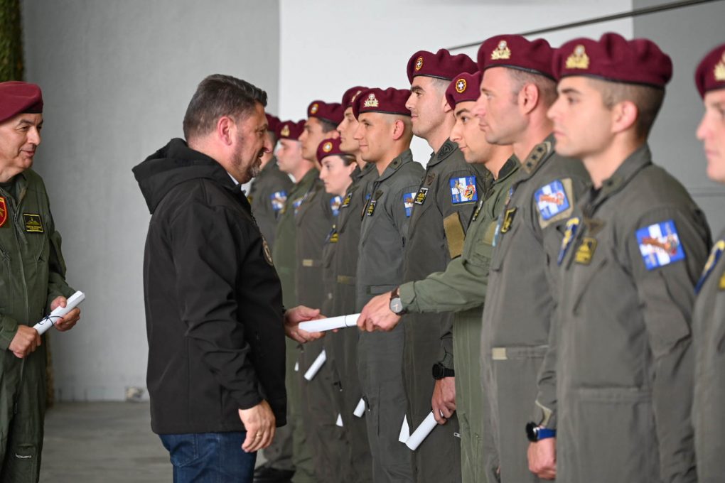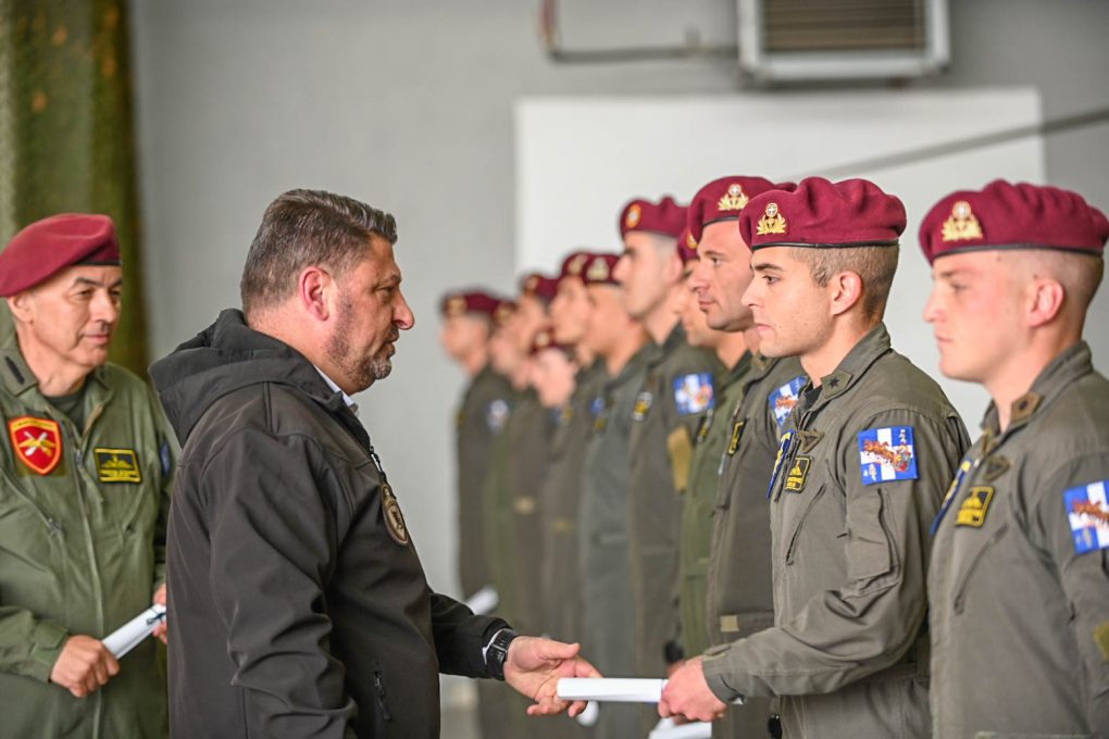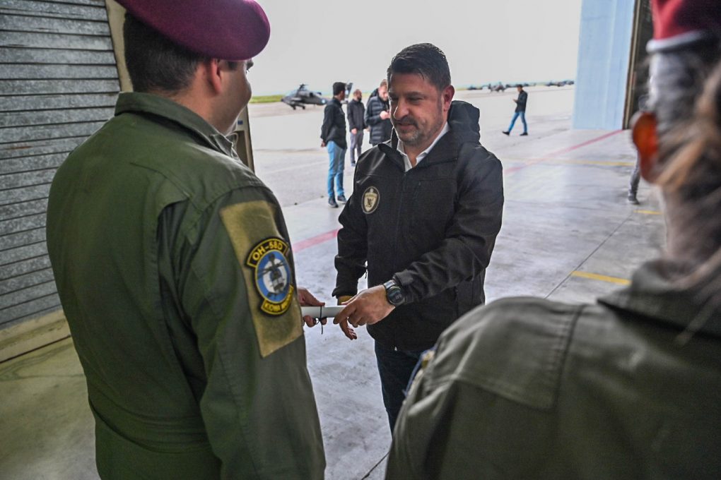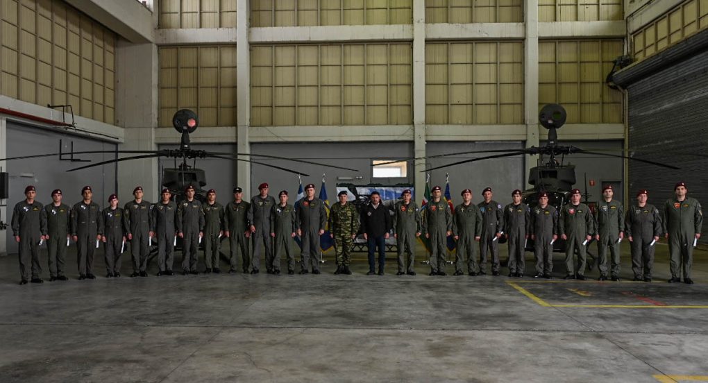 Next, Mr. Hardalias attended the graduation ceremony and awarded the diplomas to 16 helicopter pilots of the Army, who successfully completed their attendance at the Pilots Refresher Training School, regarding Kiowa, Apache-A and Apache-D Helicopters.