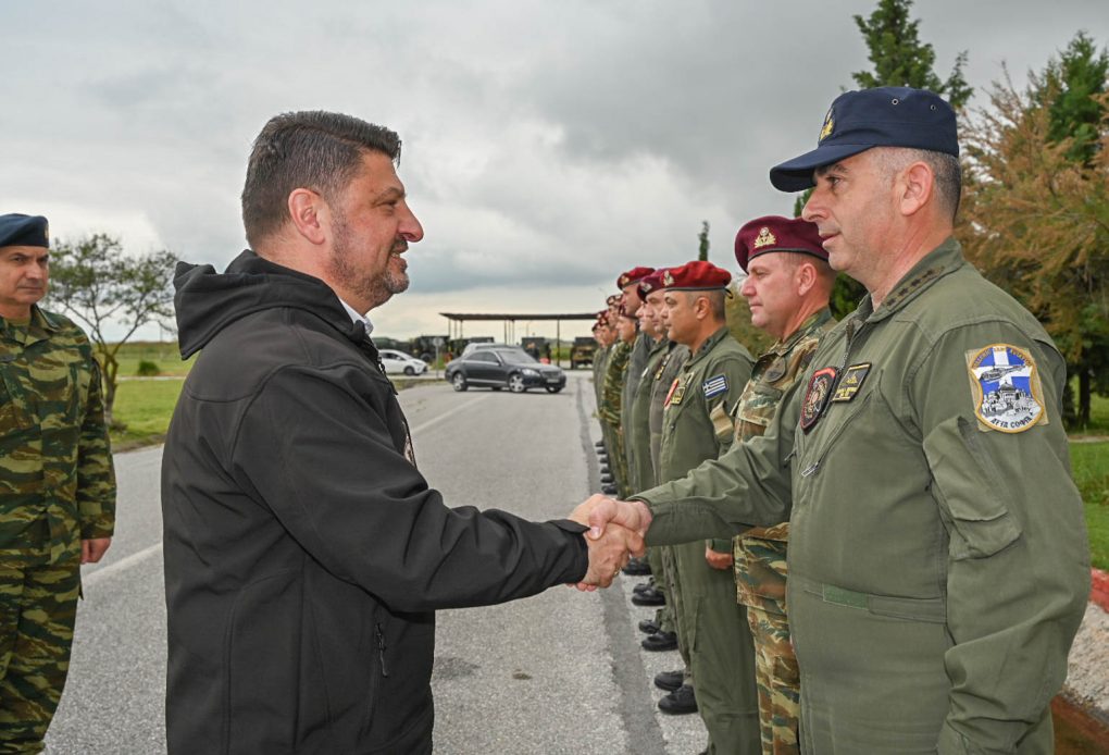 On Thursday 11 May 2023, the Deputy Minister of National Defence Mr. Nikolaos Hardalias visited the 1st Army Aviation Brigade headquarters at Stefanovikeio, Magnisia, accompanied by the Commanding General of 1st Army/EU-OHQ, Lieutenant General Ioannis Tsioplos.
