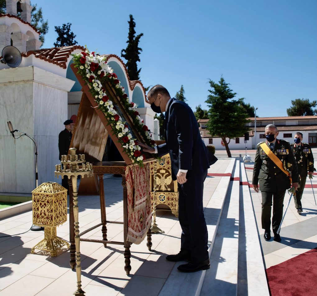 The Deputy Minister of National Defence Alkiviadis Stefanis attended the celebration for the Feast of Saint George, patron saint of the Army, which was held at the School of Infantry, in Chalkida, on Monday, 20 May 2021.