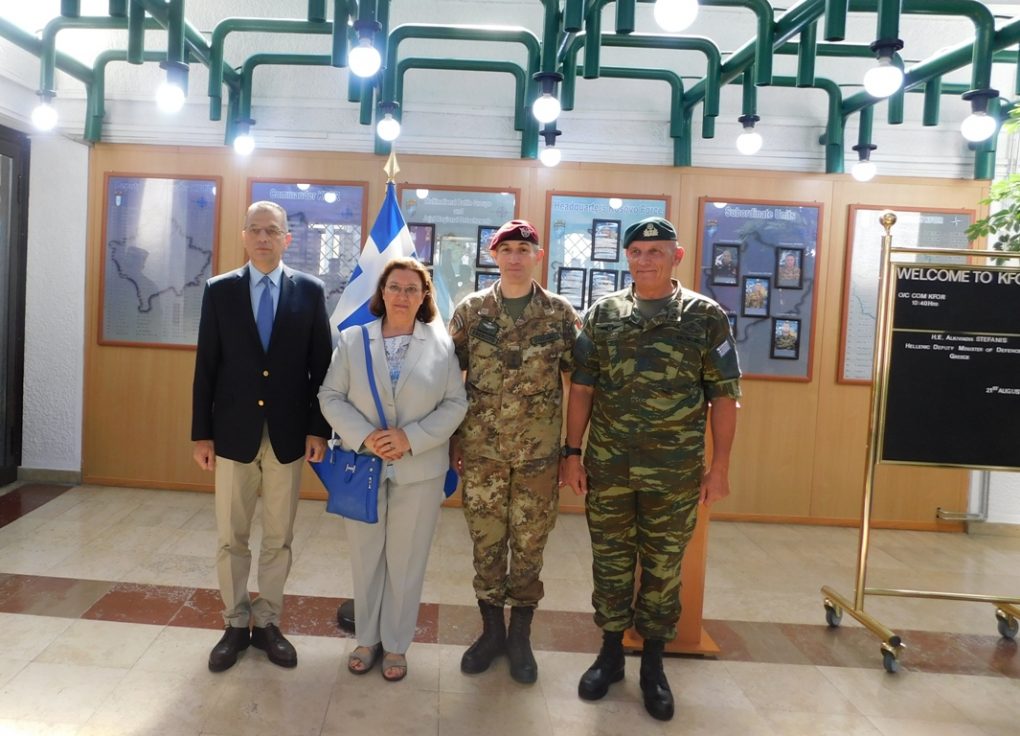 In the context of his visit, the Deputy Minister of National Defence, met with the Ambassadress, Mrs Chrysoula Aliferi, the head of Pristina Liaison Office, and the Kosovo Force (KFOR) Commander, Major General Lorenzo D’Addario (Italian Army) and discussed matters of mutual interest.