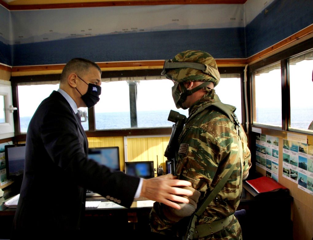 The Deputy Minister of National Defence Alkiviadis Stefanis visited Units of the Armed Forces in the area of responsibility of the 98th Higher National Guard Battalions Command on Lesvos island, on Monday 21 December 2020.