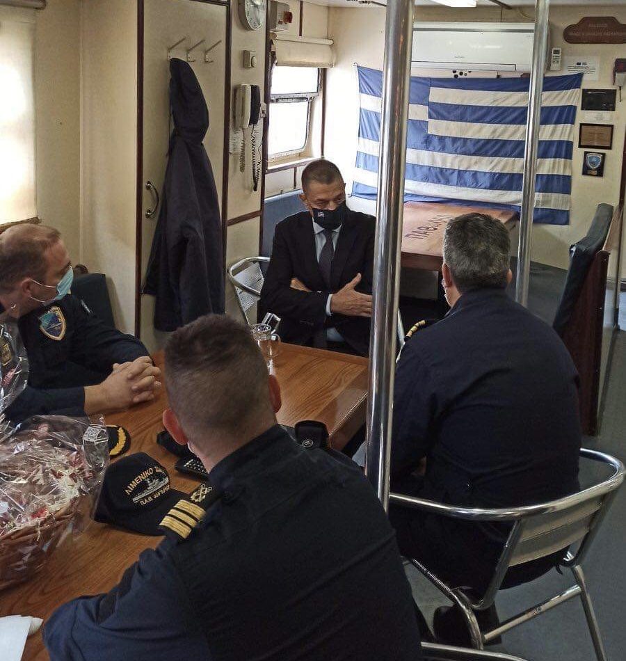 The objective of his visit was to be briefed on the current operational matters and activities of the Units. In this context, he visited the Headquarters of the Formation, the Surveillance Outpost “PROVOSKIDA”, the 3rd Report Post, the 3rd Electronic Application Post, as well as the gunboat “NAVMACHOS” of the Hellenic Navy and the Open-Sea Patrol Boat 050 “ARKOI” of the Hellenic Coast Guard, in order to exchange wishes with the personnel in view of the oncoming holidays.