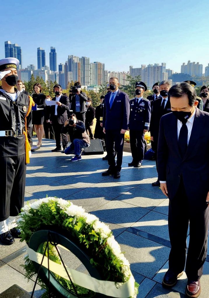 The Deputy Minister of National Defence was warmly welcomed by the organizers, the delegates of the Government of the Republic of Korea, and the delegates of the other Sending States. The Prime Minister of the Republic of Korea, Chung Sye-kyun, at a private meeting the two men had, thanked him expressing his pleasure on account of the presence of Greece, and the Greek Government, at the celebrations, as well as at the ceremony that took place at the UN Memorial Cemetery in Busan.