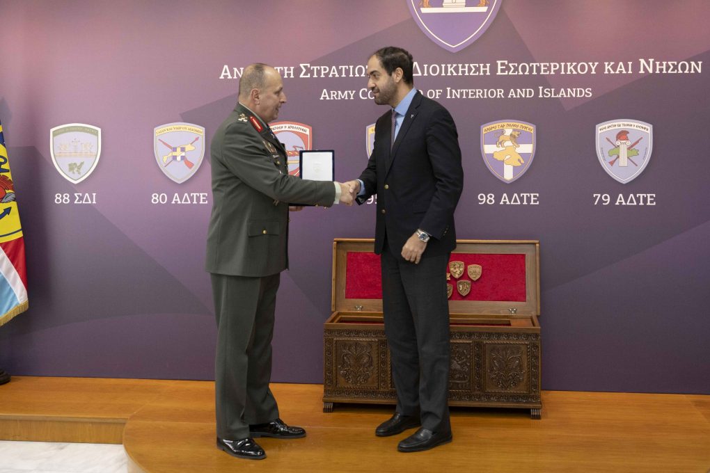 During the delivery of a commemorative award to the outgoing Commander of the Higher Military Command of Interior and Islands, Mr. Kefalogiannis thanked him on his work and contribution and wished the new Higher Military Command of Interior and Islands Commander every success in his new duties.