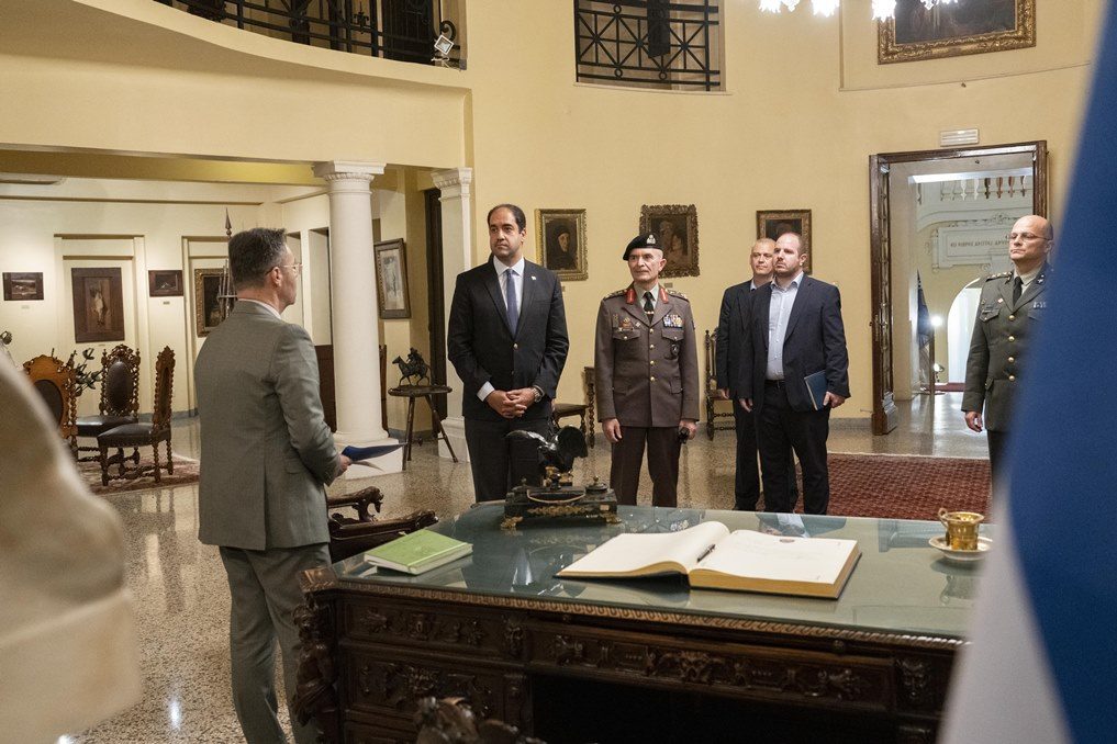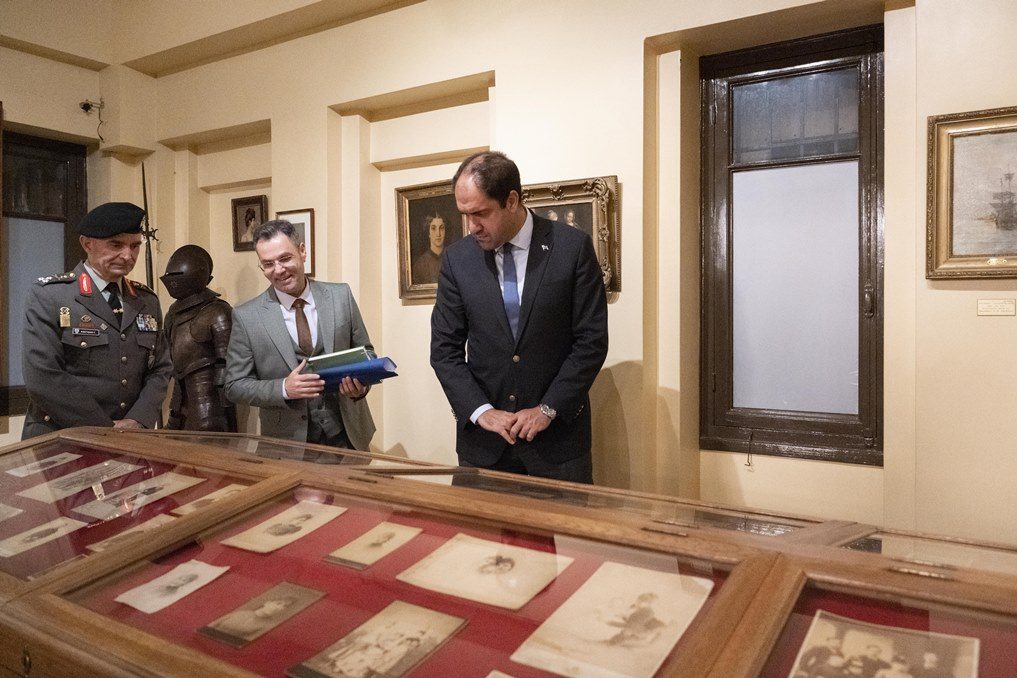 Heirloom Hall, as well as other Halls of the “Saroglou Mansion”. The Deputy Minister of National Defence was accompanied by the Commanding General of the Hellenic Army Supreme Military Support Command, Lieutenant General Georgios Kostidis.