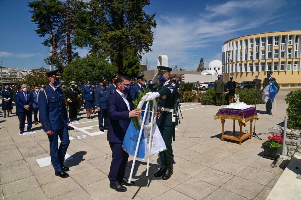 The Deputy Minister of National Defence, Mr. Nikolaos Chardalias, attended the annual ceremony, commemorating and honoring the Fallen Officers and Soldiers of the Medical Corps of the three Services of the Armed Forces. The ceremony was held the courtyard of 401 Athens General Army Hospital.