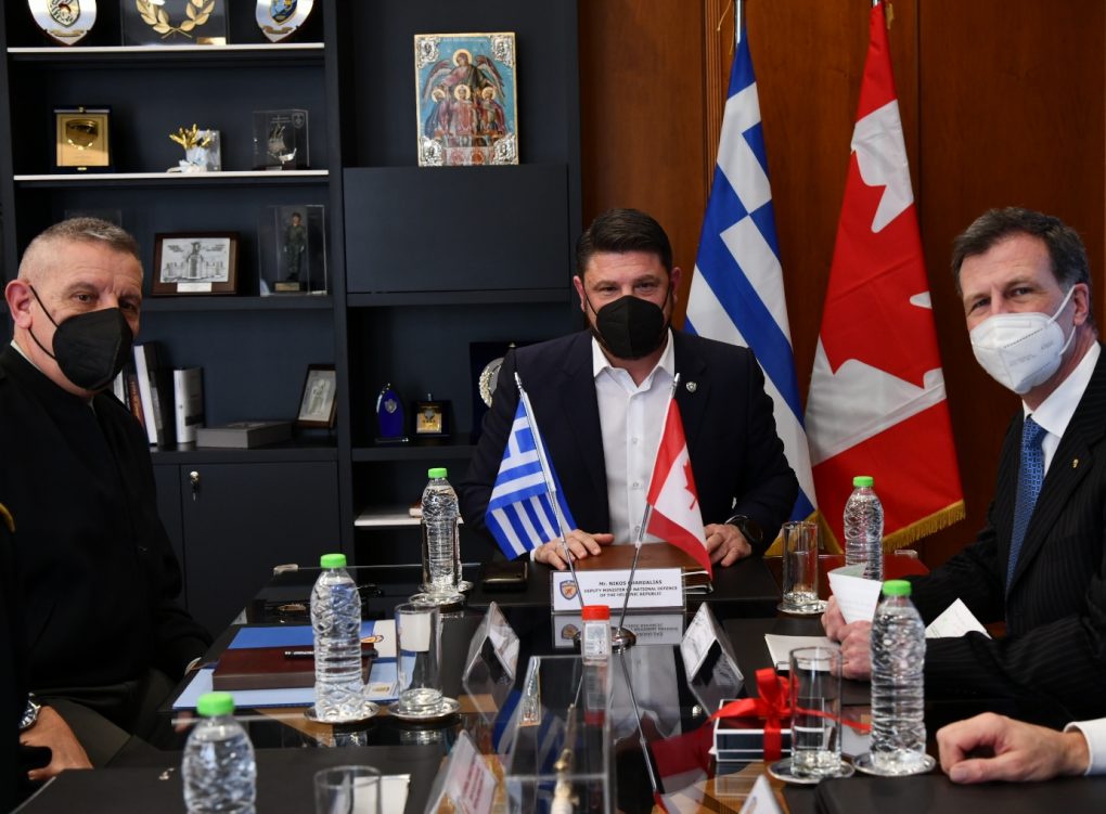 The Deputy Minister of National Defence Mr. Nikolaos Chardalias had a meeting with the Ambassador of Canada to Greece, Mr. Mark Allen, at the Ministry of National Defence, on Wednesday 2 February 2022.