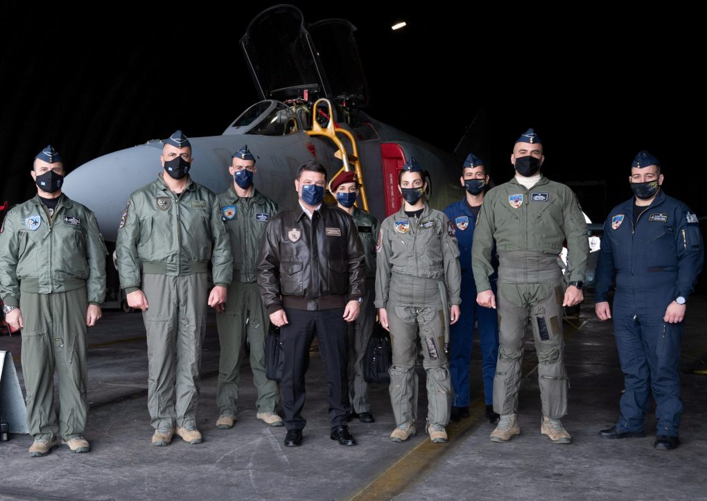 The Deputy Minister of National Defence Mr.Nikolaos Chardalias visited the 116th and 117th Combat Wings, on Sunday, 12 December 2021, based at the Air Bases of Araxos and Andravida respectively. The Deputy Minister was welcomed by the Commanders of the Units, Colonel Petros Sassaris and Colonel Angelos Kaligaridis (117th CW).
