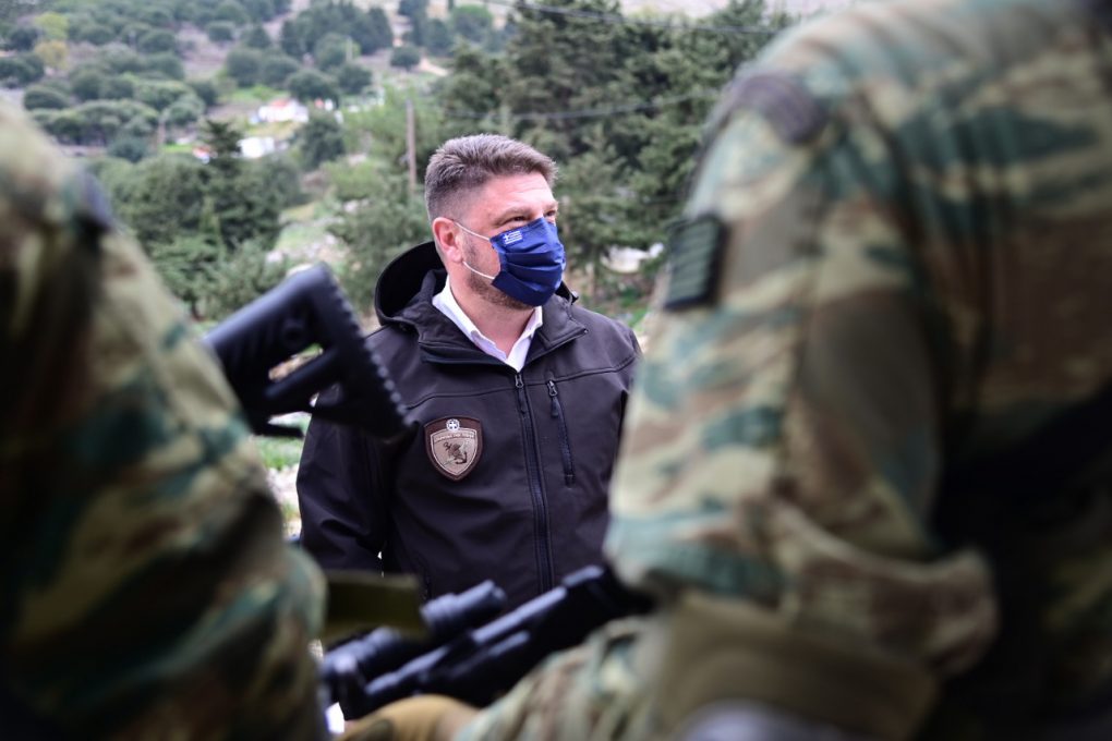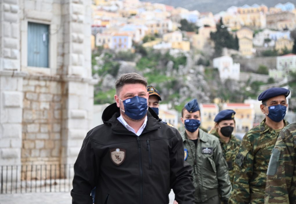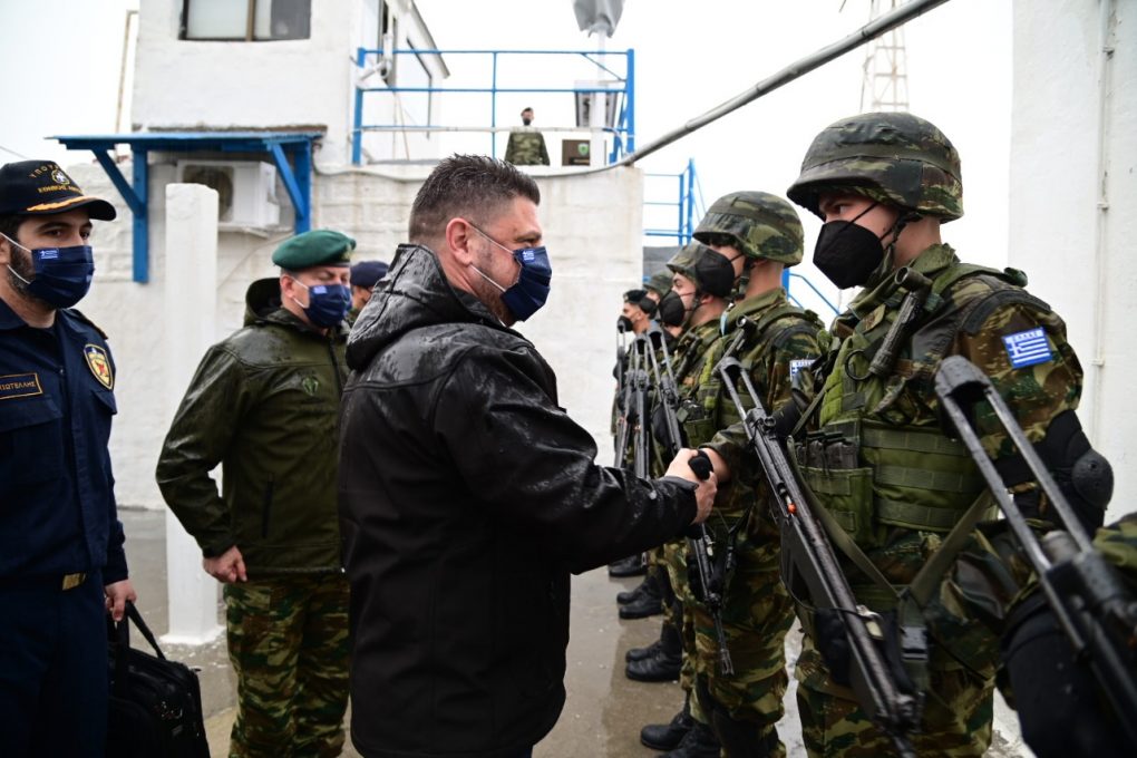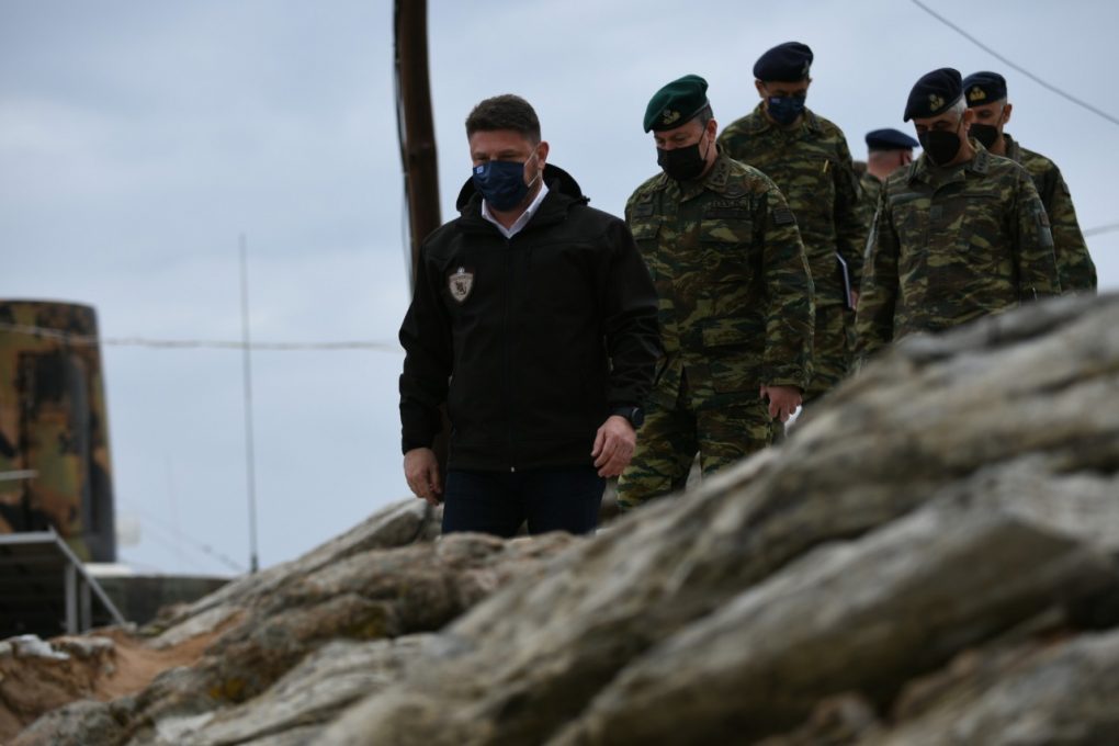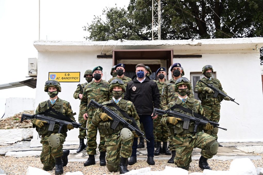 The Deputy Minister of National Defence Mr. Nikolaos Chardalias completed, on 13 February 2022, his four day visits to Formations, Units and Surveillance Outposts of the three Branches of the Armed Forces, in seventeen remote islands and isles of the Aegean Sea.