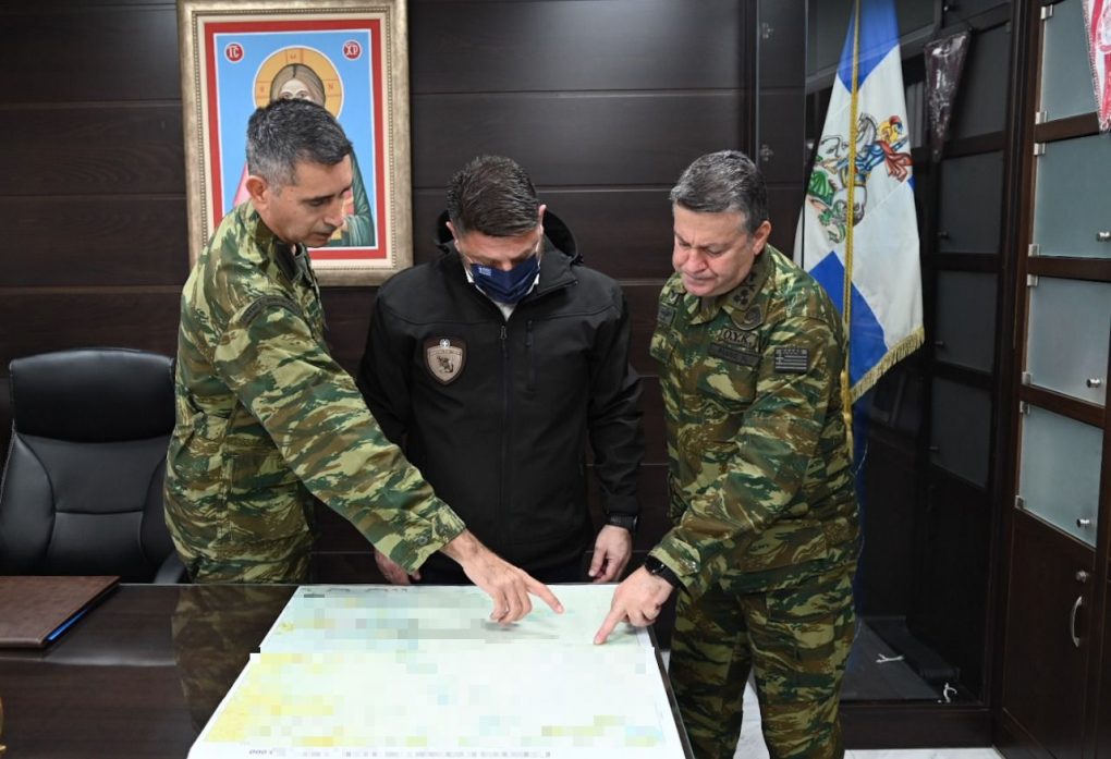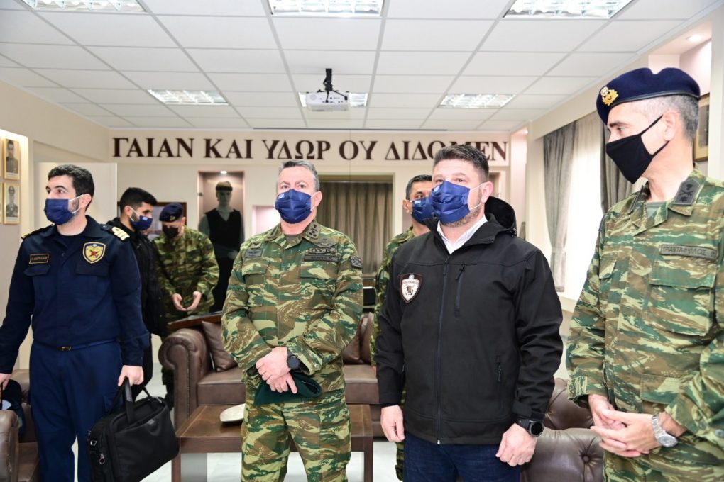 The Deputy Minister of National Defence was accompanied by the Commander of the Higher Military Command of Interior and Islands Lieutenant General Nikolaos Flaris.