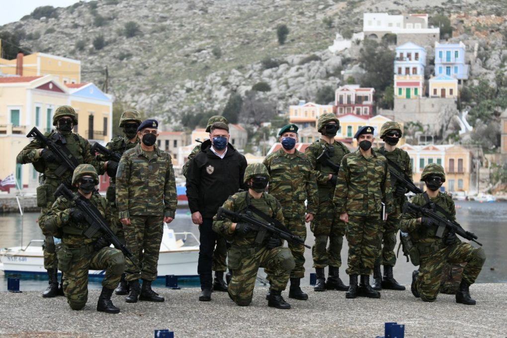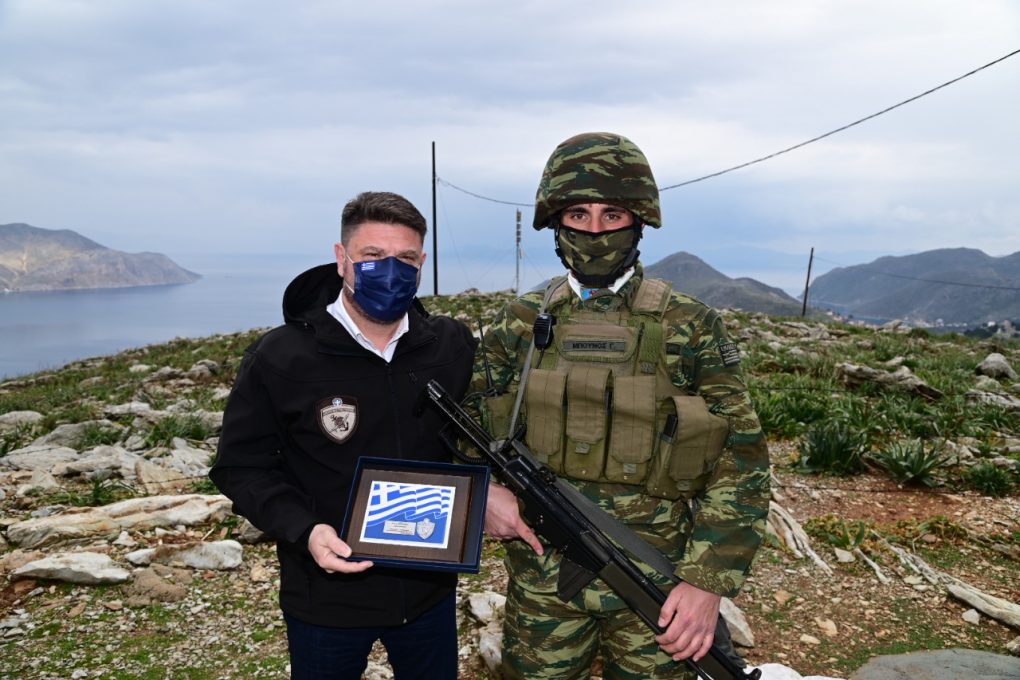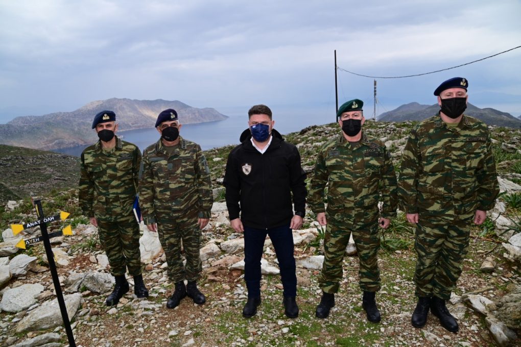 – Symi island, where he visited the base of the Island Defence Command and the Surveillance Outpost “AGIOS FANOURIOS”. During his visit to the island, he met with His Eminence the Metropolitan of Symi, Tilos, Chalki and Kastellorizo Chrysostomos and the Mayor of Symi Mr. Eleftherios Papakalodoukas.