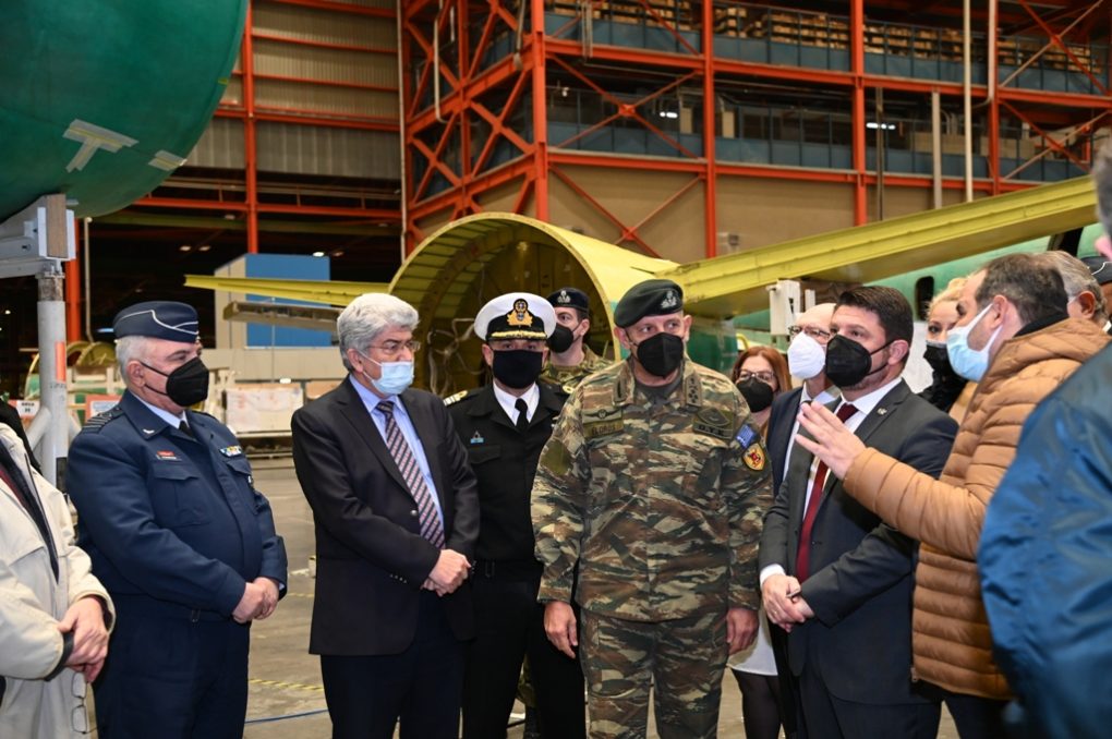 Afterwards, the Deputy Minister of National Defence visited the premises of the Hellenic Aerospace Industry at Tanagra Air Base, where he was welcomed by the Chairman of the Board of Directors of the Hellenic Aerospace Industry Mr. Ioannis Koutras and the Chief Executive Officer Mr. Demetrios Papacostas.
