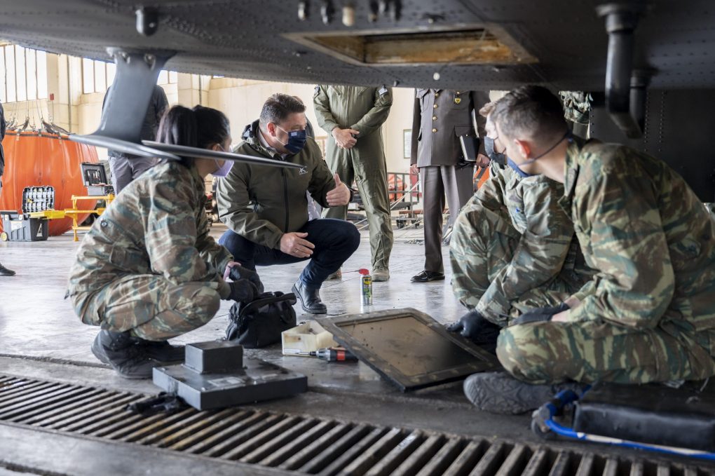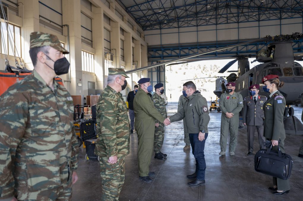 The Deputy Minister of National Defence Mr. Nikolaos Chardalias visited, on Tuesday, 12 April 2022, the military airport in Pachi, Megara, and the 2nd Army Aviation Group, as well as the 2nd and the 4th Army Aviation Helicopter Battalions, accompanied by the Director of the Army Aviation Directorate of Hellenic Army General Staff, Brigadier General Ioannis Koukoulis and the Commander of the 1st Army Aviation Brigade, Brigadier General Ioannis Cheimarios.