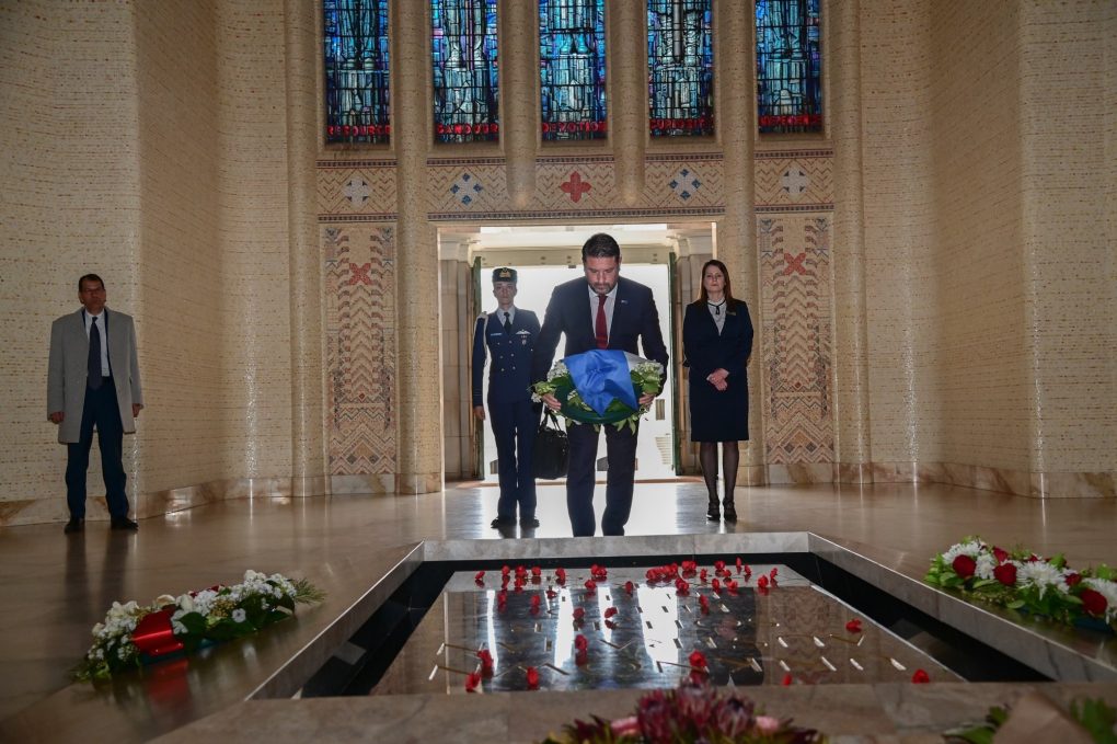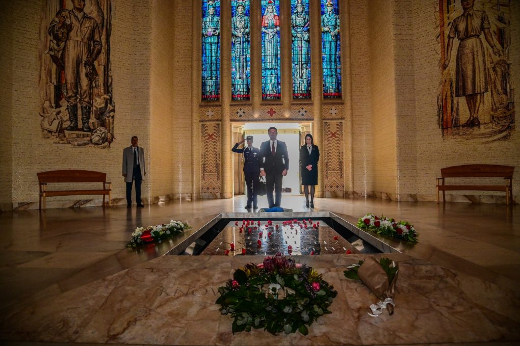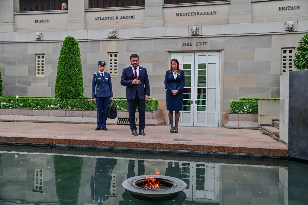 He visited the Australian War Museum and laid a wreath in the Tomb of the Unknown Australian Soldier. Next, he visited the Stone of Remembrance for the fallen of the Battle of Crete.