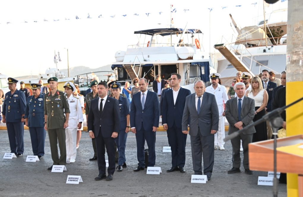 The Deputy Minister of National Defence Mr. Nikolaos Hardalias represented yesterday, Wednesday 14 September 2022, the Hellenic Republic to the ceremonial anniversary “LASKEIA 2022”, on the occasion of the sinking of HN Submarine KATSONIS, during WWII. The event, which was organised by the Hellenic Navy General Staff, the Municipality of Elefsis and the Folklore Society of Elefsis “Adrahti”, took place at Elefsis beach.