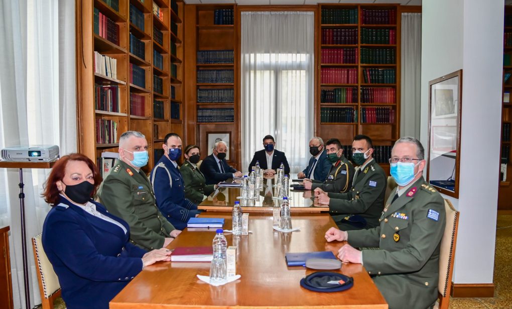 The Deputy Minister of National Defence Mr. Nikolaos Hardalias visited today, Wednesday 16 March 2022, the Army Share Fund Hospital of Athens (NIMTS)in Athens, accompanied by the Deputy Chief/HAGS Lieutenant General Georgios Kellis, where he was received by the Chairman of the Administrative Board, Lieutenant General (ret.) Antonios Mytilinakis, and the General Director, Lieutenant General (ret.) Panagiotis Noulis.